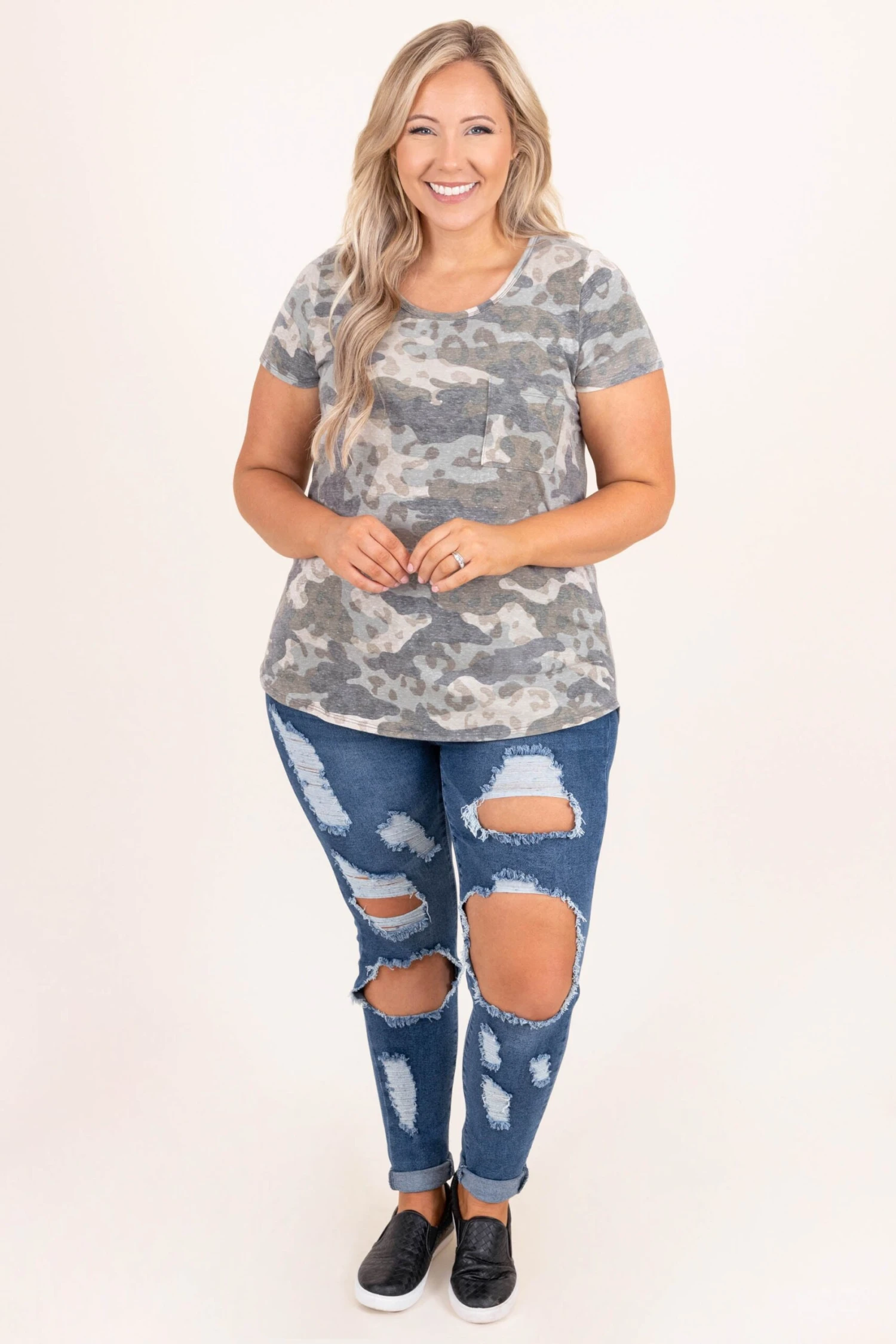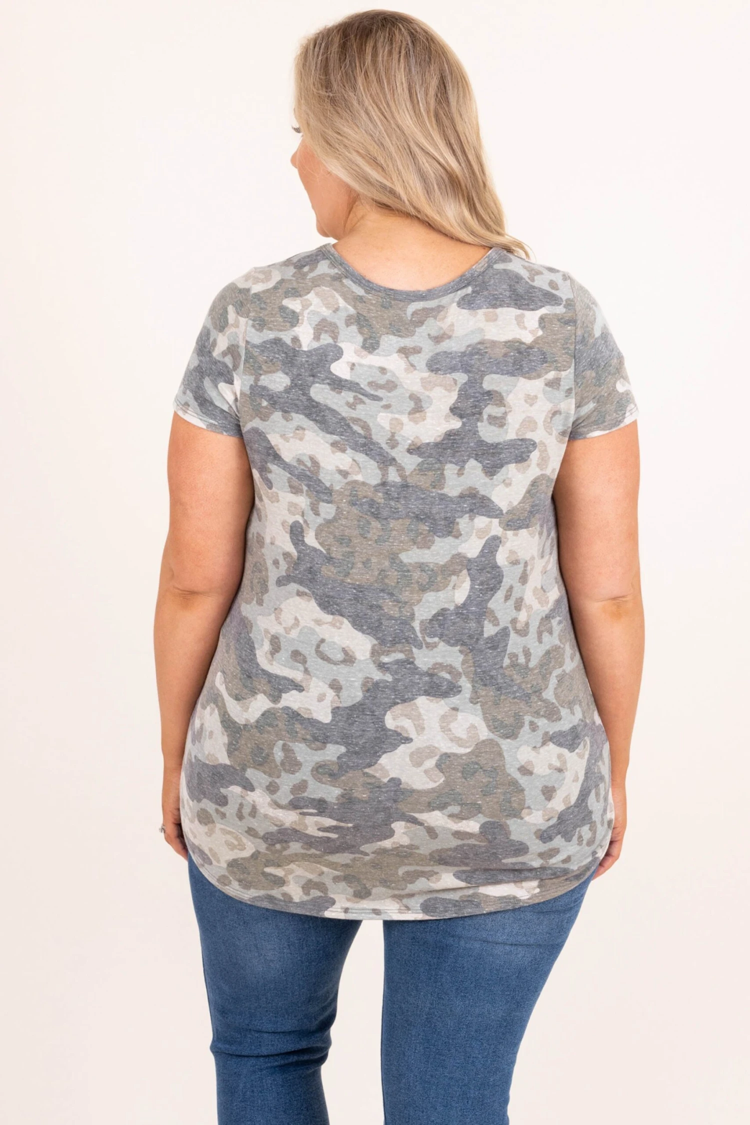 Create new habits in this cute top!! The stretchy material and camouflage print work well together for all-day comfy wear! Style this with your favorite skinnies and sneakers for a classic, casual look!