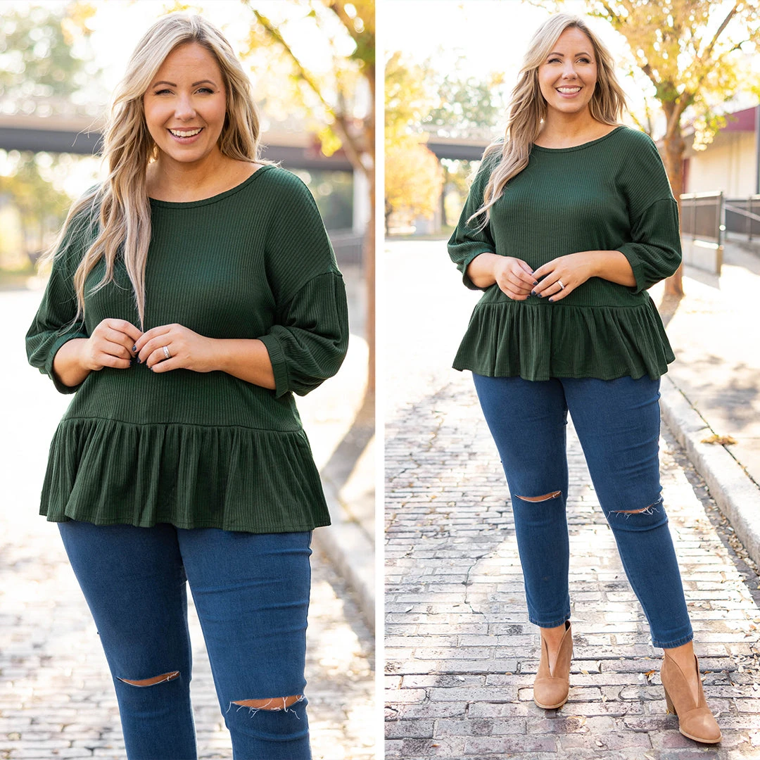 This top is gonna be the newest trend after everyone sees you wearing it! It has a wonderful olive color and a cute babydoll style. It’s perfect for a day at the office or a fun dinner with friends! Style it with jeggings and booties for a trendy look!