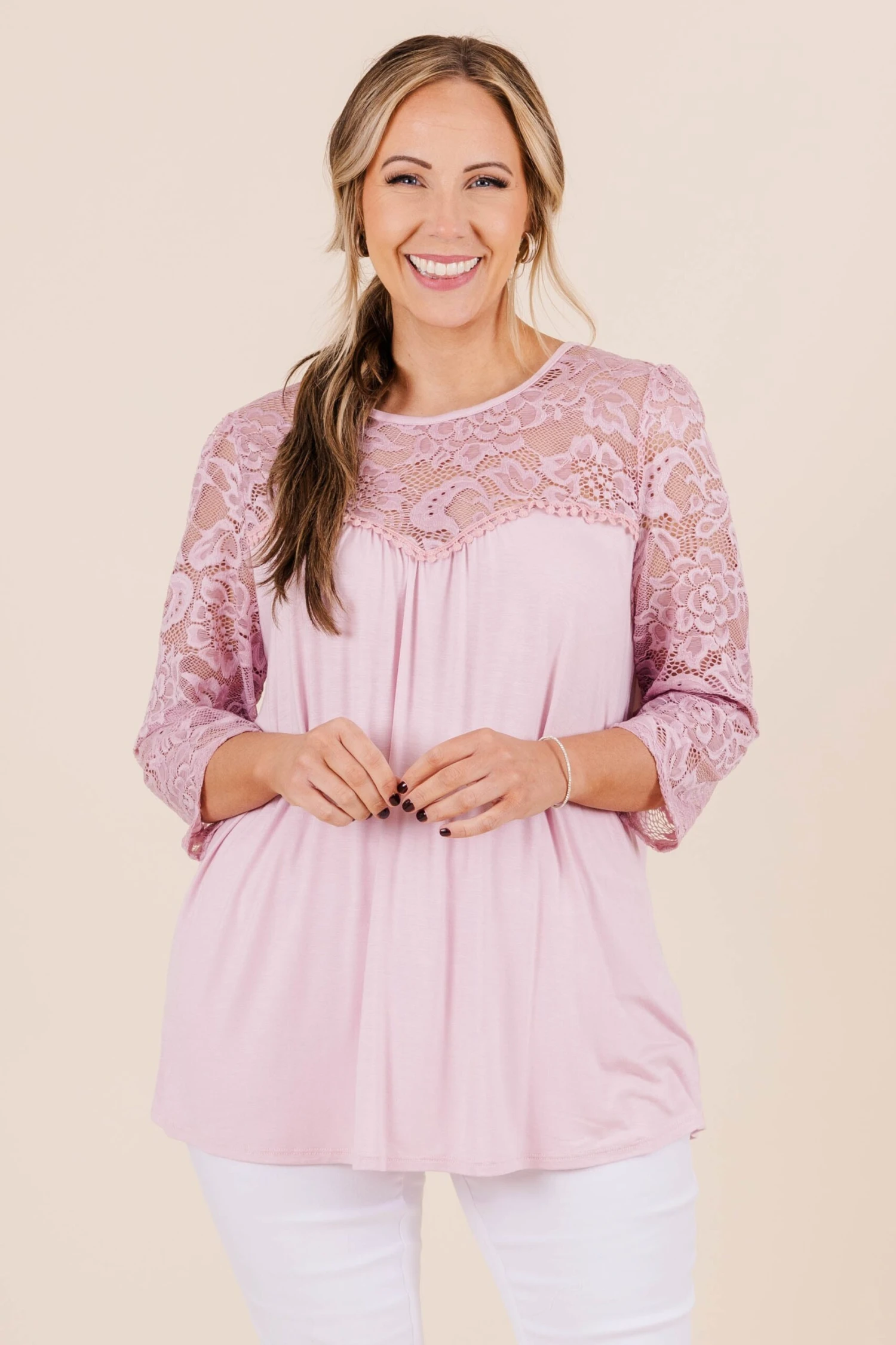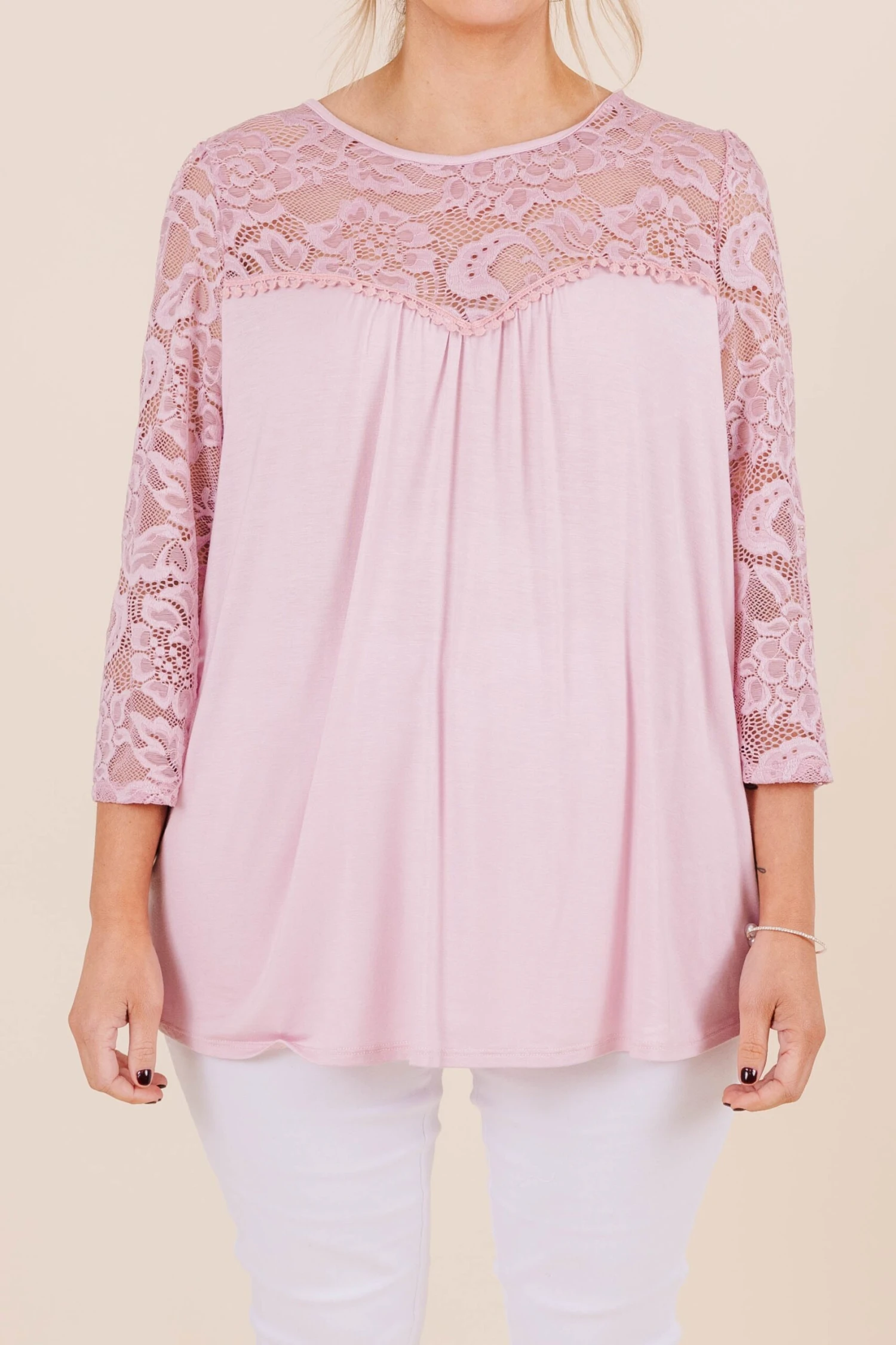 This gorgeous top is designed to impress with its flattering silhouette and trendy lace detailing! Perfect for a date night, its stretchy fabric will keep you comfortable all night, and its pretty mauve color easily pairs with any outfit!
