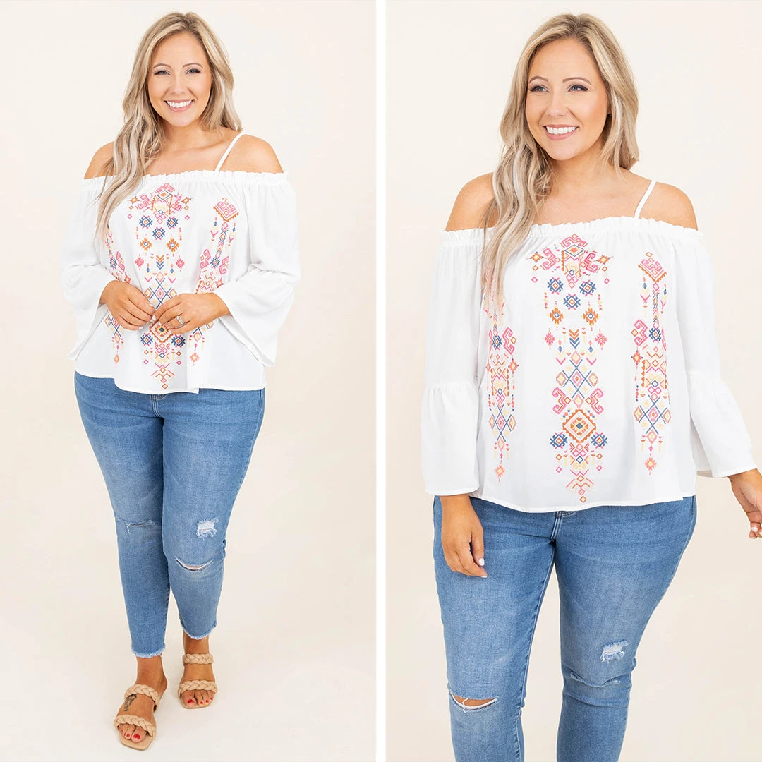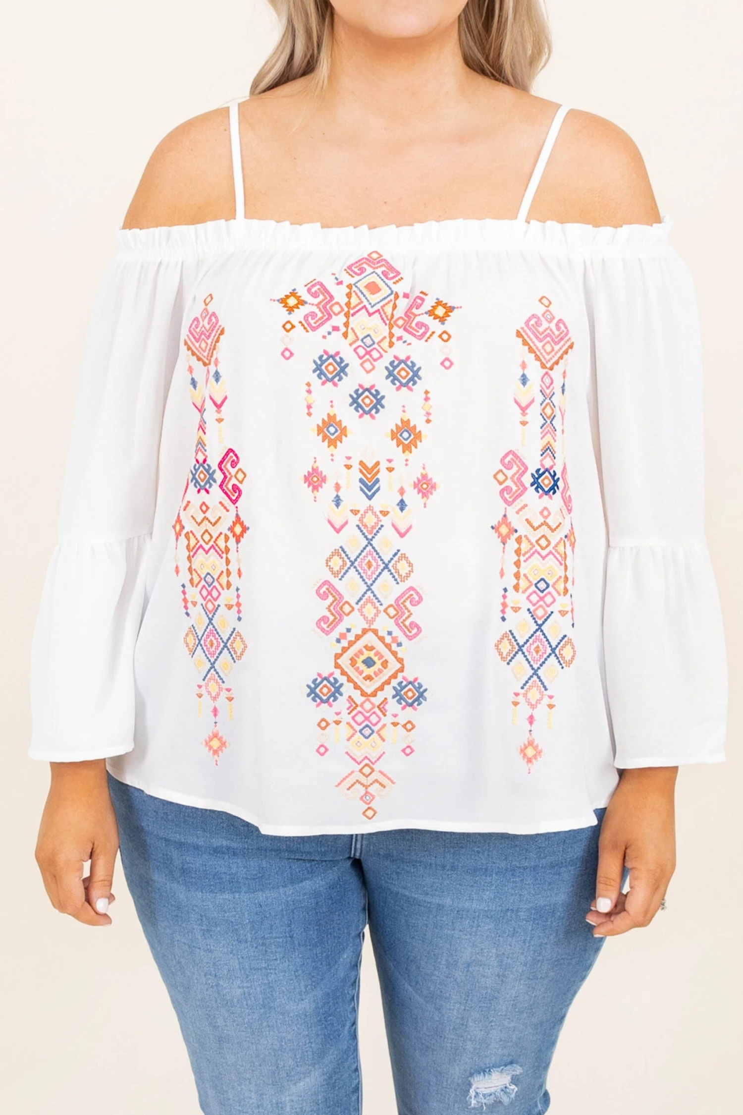 This top makes us want to take a beach vacay! The embroidered style is so trendy and the off the shoulder look is so chic! This cutie has adjustable straps so you can adjust them to your liking and an elastic band around the shoulders! Style it with some skinnies and sandals for a super stylish look!