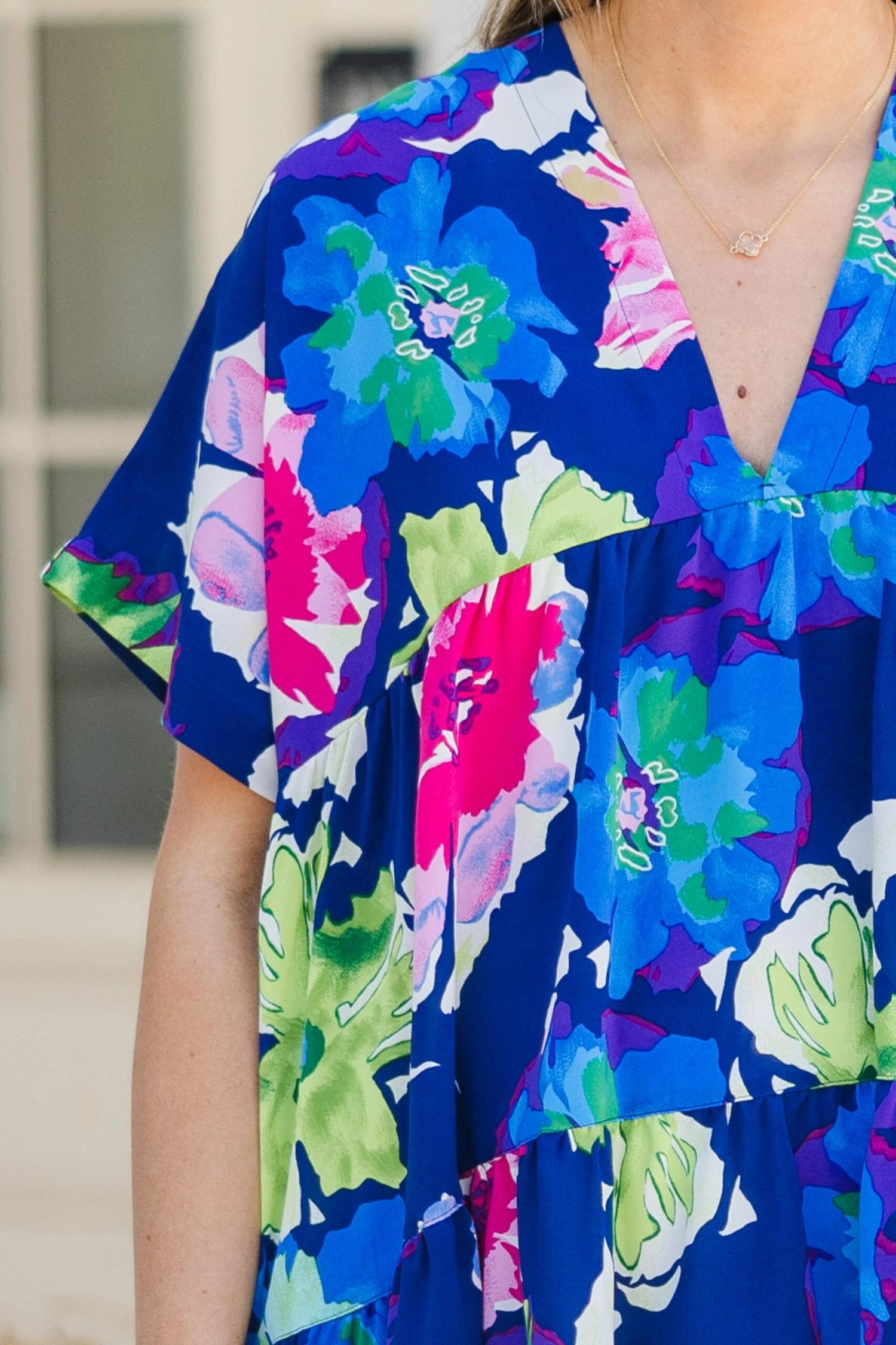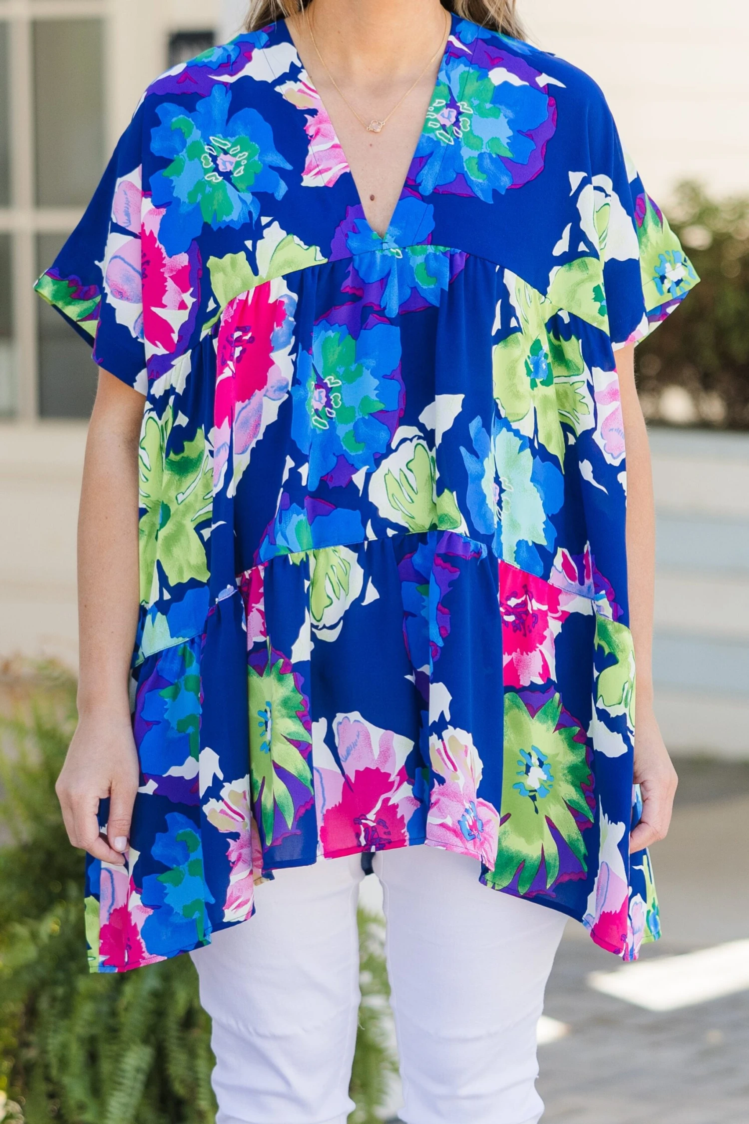 Aloha Spirits Top in Pink features a delicate floral pattern and a flowy fit. Its vibrant blue color is perfect for the season and pair well with cute denim and wedges. Stay stylish and comfortable with this versatile top.