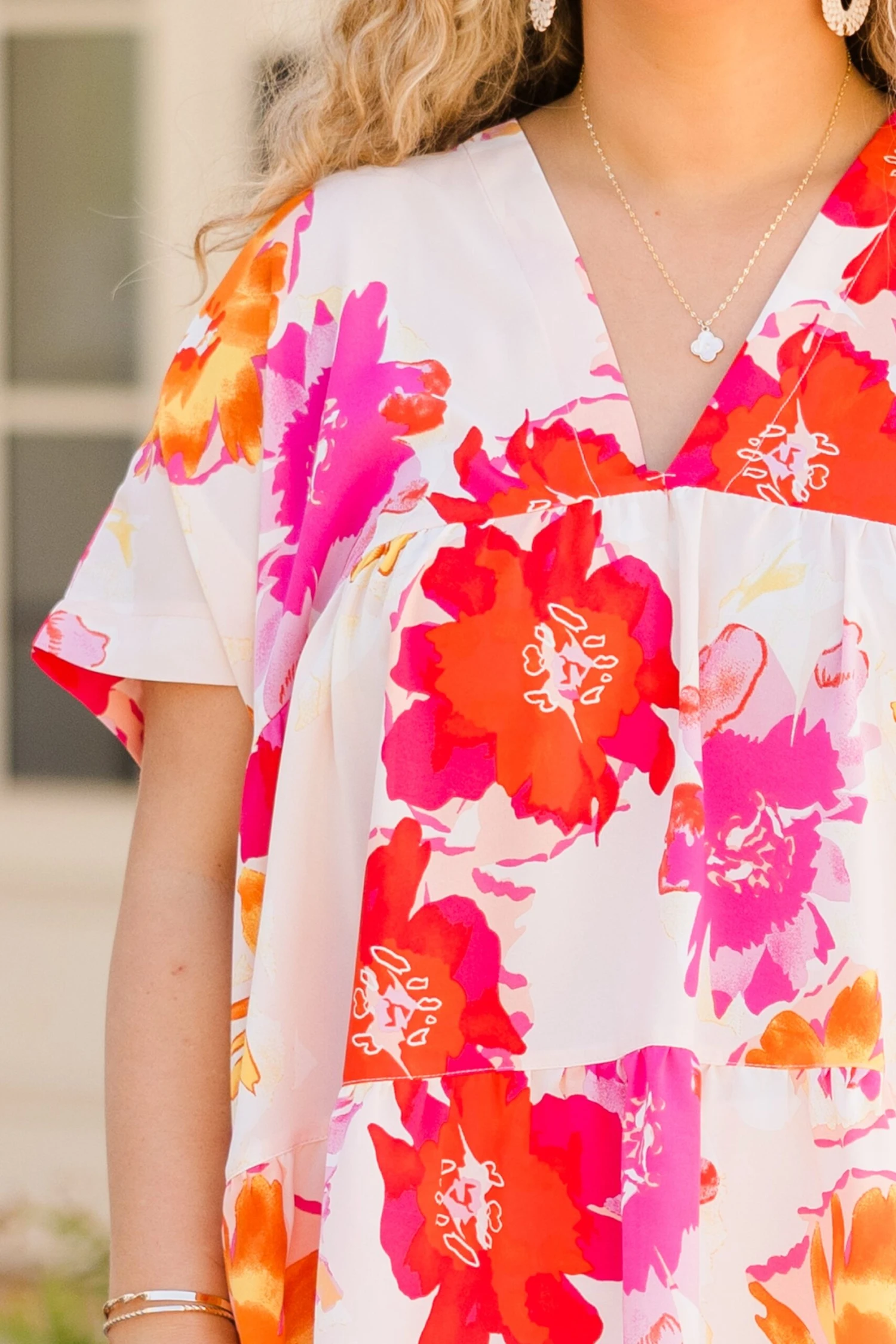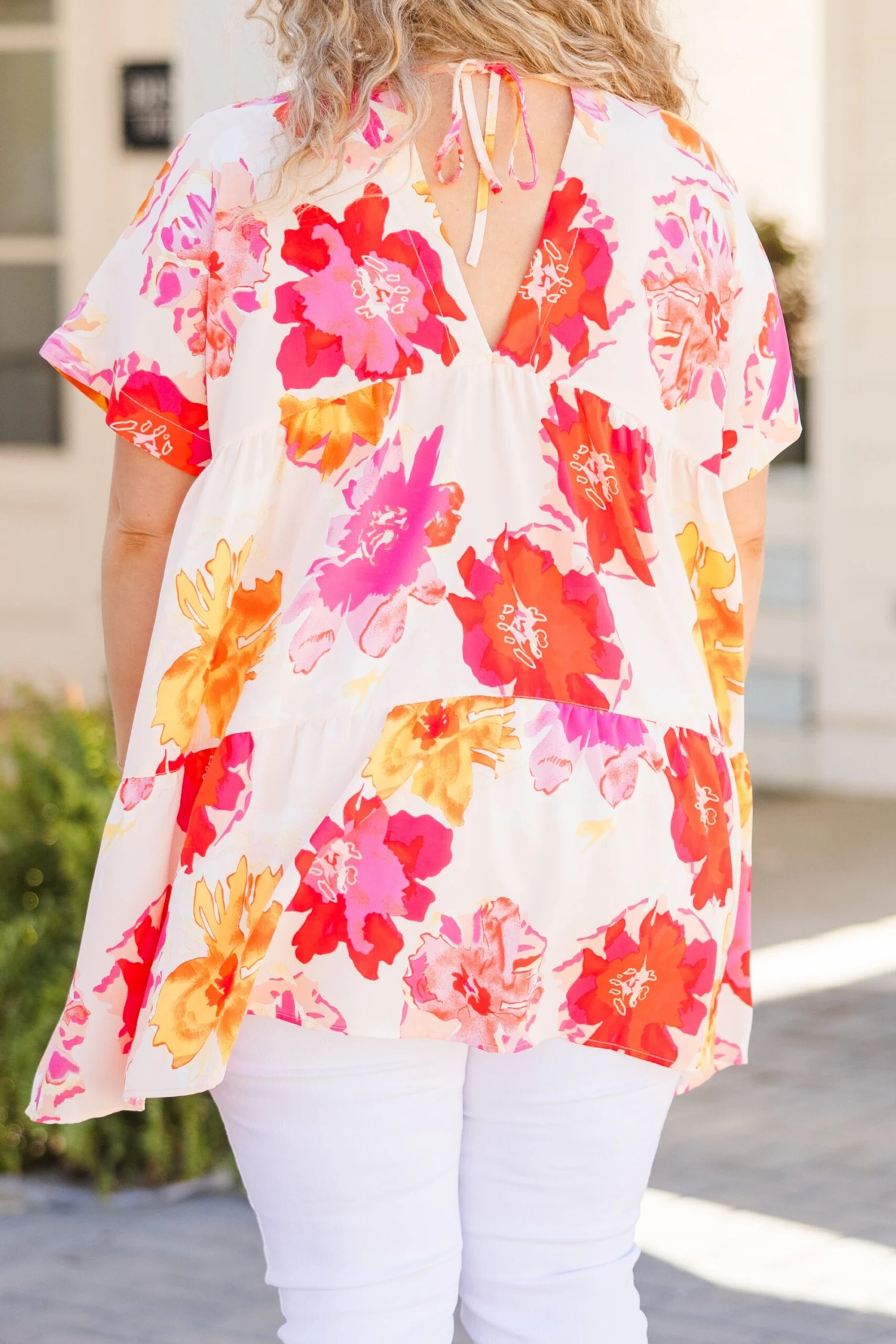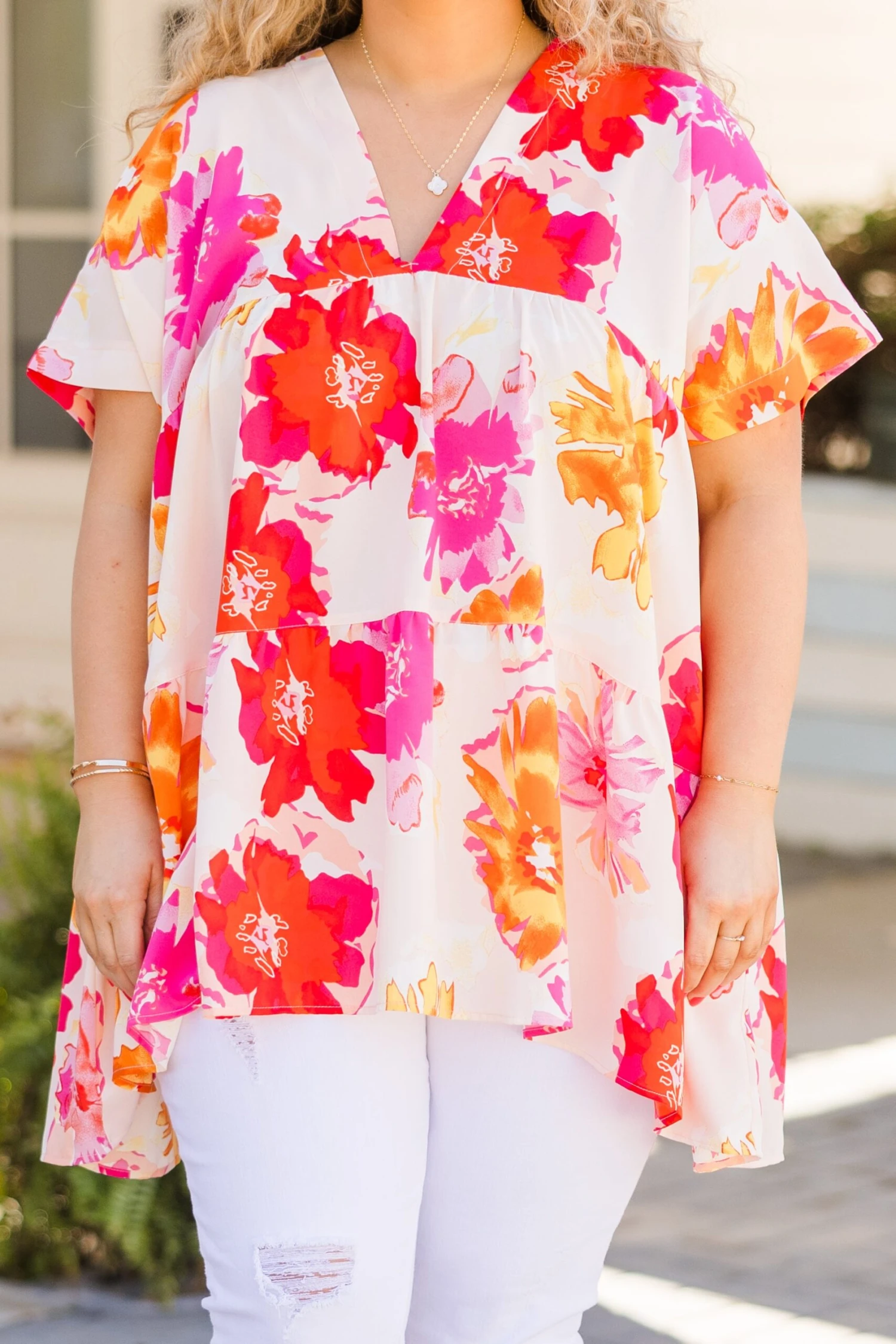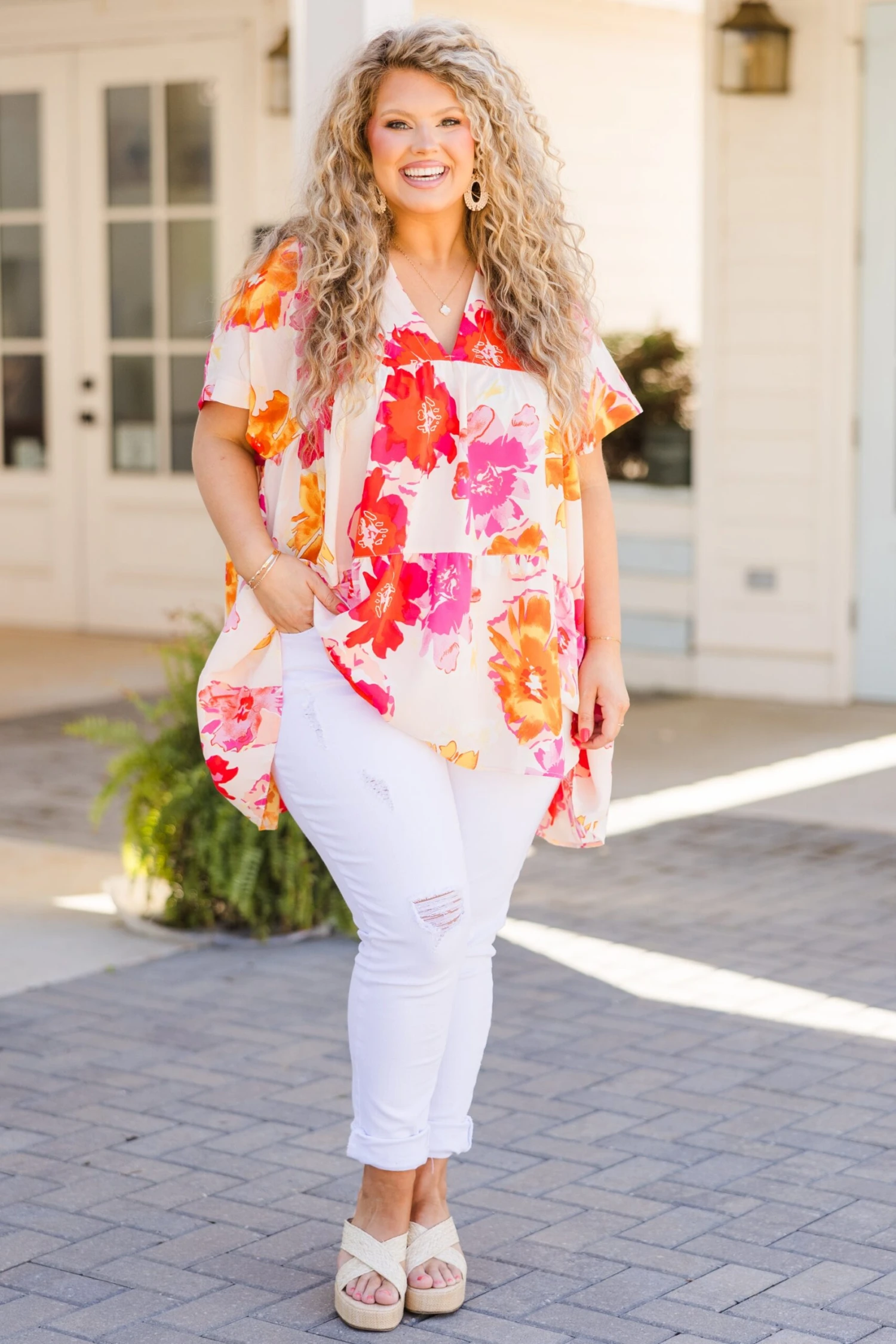 Aloha Spirits Top in Pink features a delicate floral pattern and a flowy fit. Its vibrant colors are perfect for the season and pair well with cute denim and wedges. Stay stylish and comfortable with this versatile top.