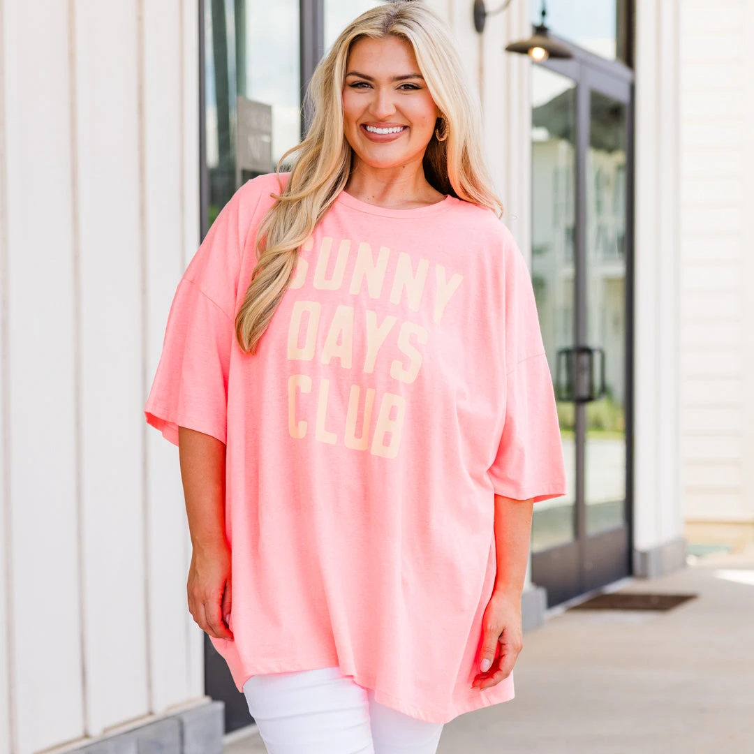 Always Blooming Boyfriend Tee, Neon Coral Pink