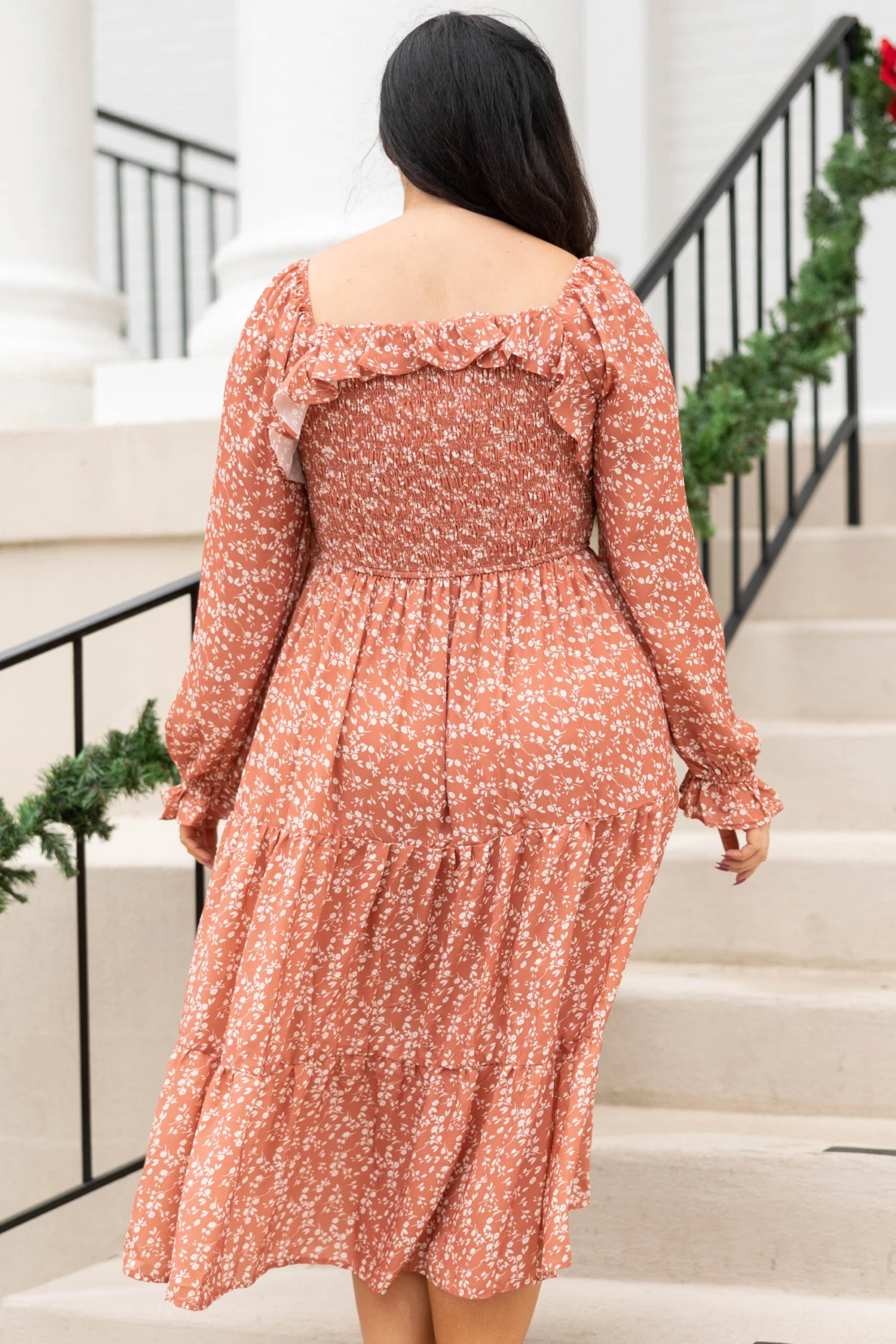Take this beauty on your next trip! Whether you are headed on a day trip or a weekend vacay this dress is perfect for all occasion! It has a lovely rust color with a vintage style bodice that is so chic! The bubble sleeves and figure flattering fit is perfect for the season! Style this dress with booties and cute accessories for a classy chic look!