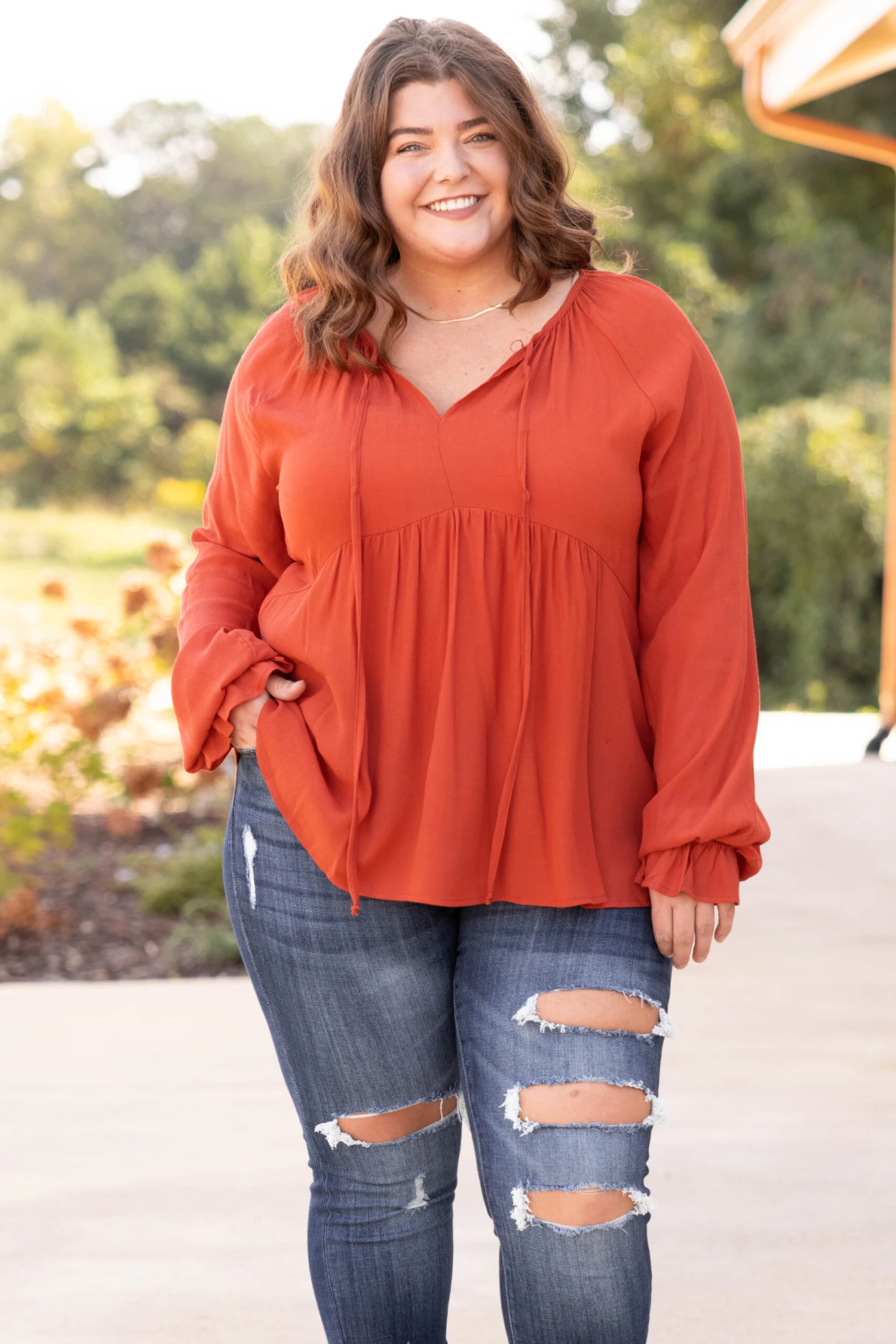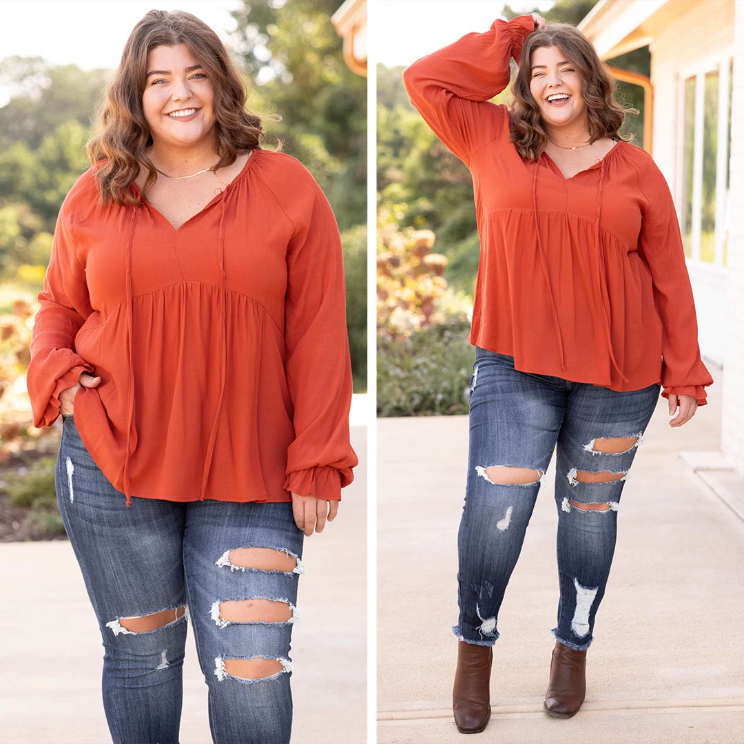 Better Feelings Babydoll Top, Rust