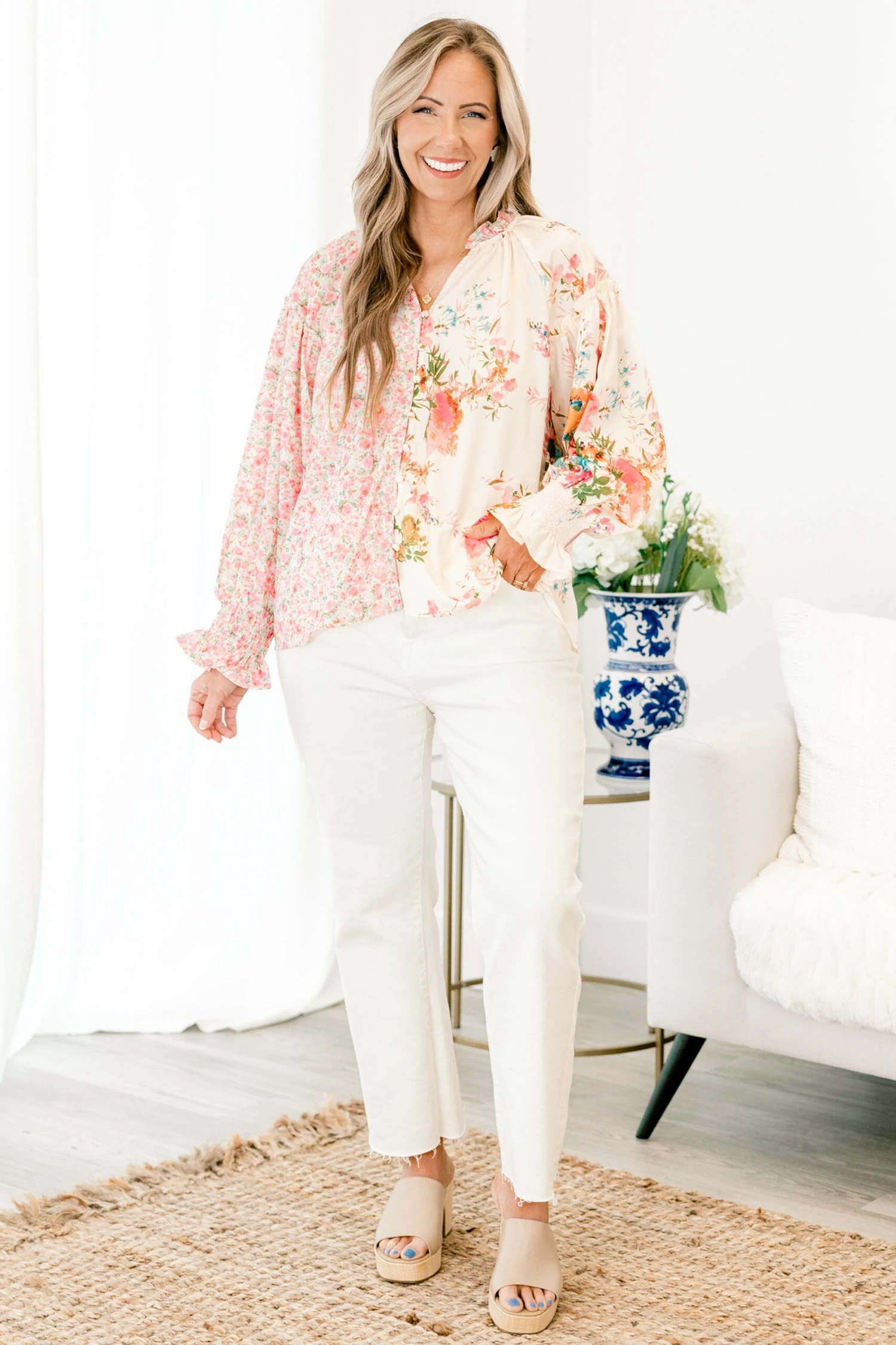 We are so in love with this top in a beautiful pink color! With delicate bubble sleeves and a charming floral pattern, this top is perfect for a brunch date! Elevate your style and make a statement with this must-have piece!