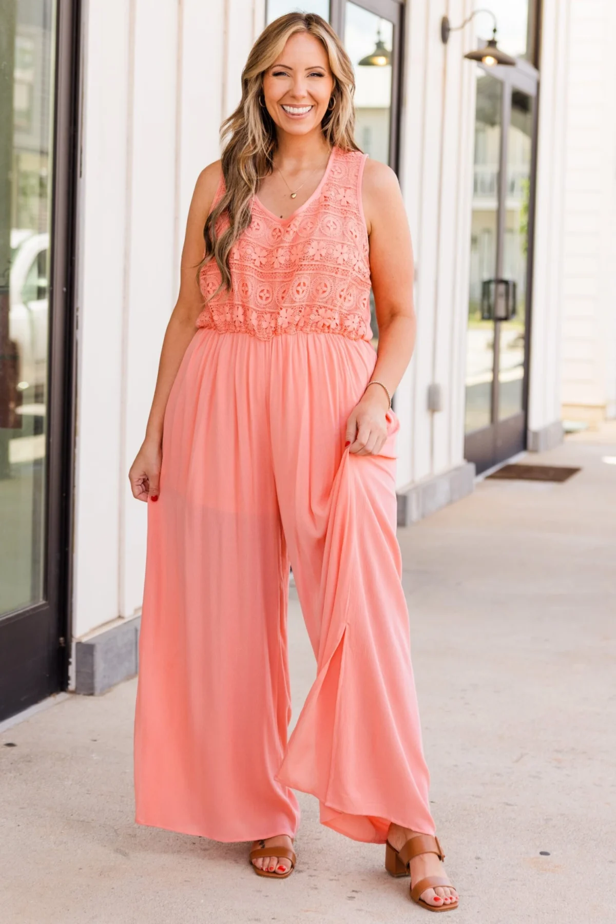 Boho In Lace Jumpsuit, Peach