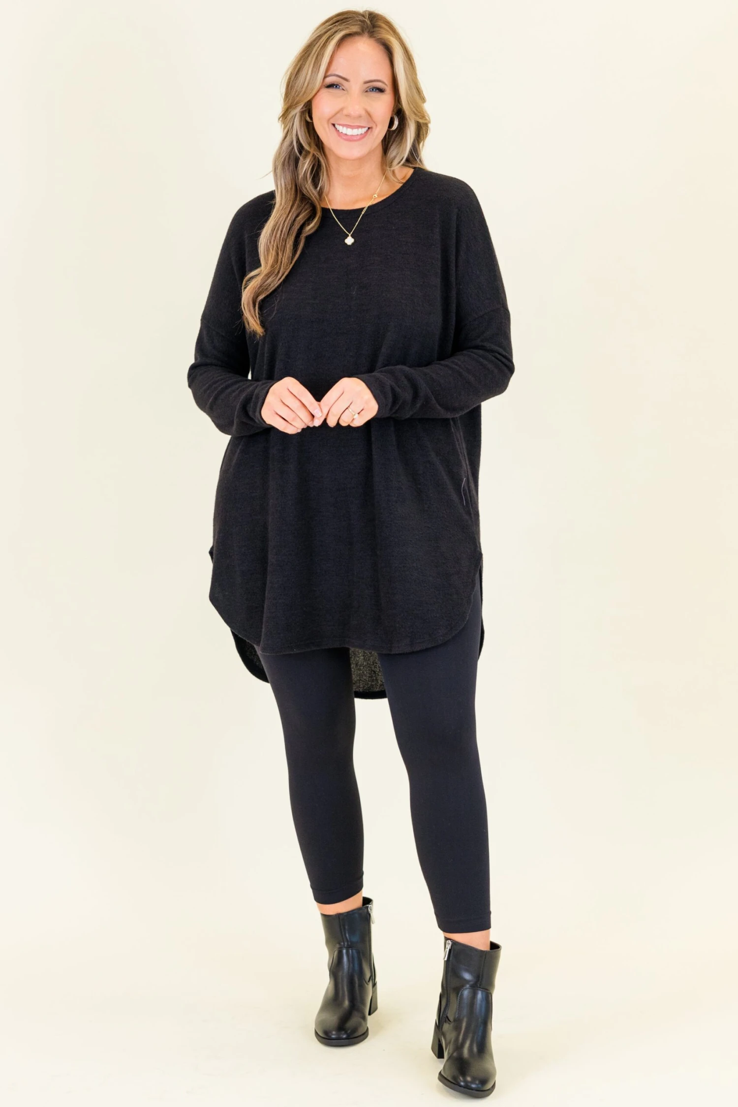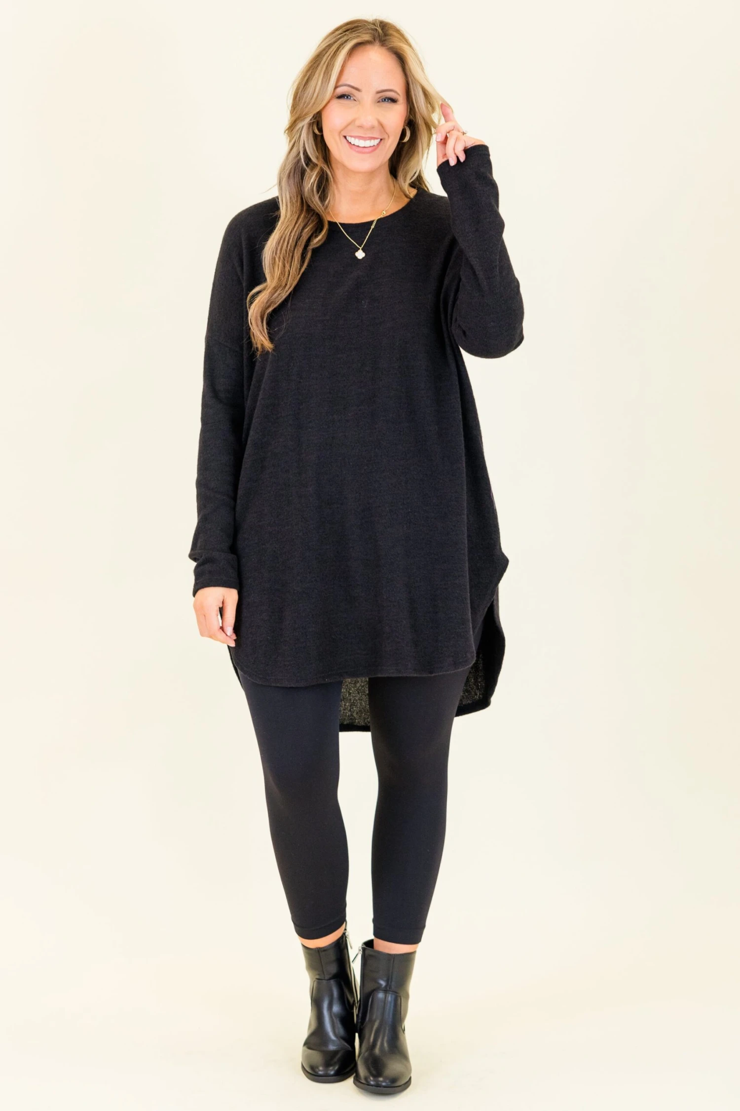 This cutie was made with you in mind! This tunic features a figure-flattering fit making it the perfect piece for a casual day out or loungewear. The lovely black color and high-quality fabric will keep you looking stylish all day!
