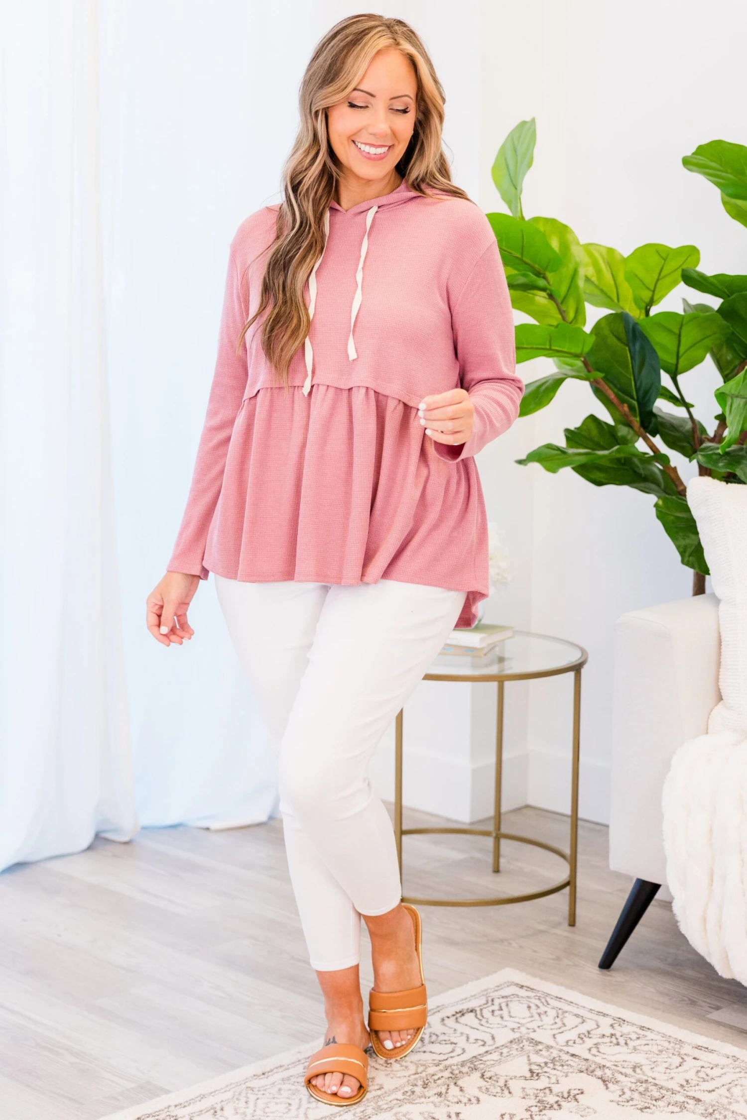 Elevate your wardrobe with this hoodie in mauve! The babydoll silhouette and waffle knit material provide both comfort and style! With a functional drawstring, dress it up or down with your favorite denim or leggings! A versatile addition to your closet!