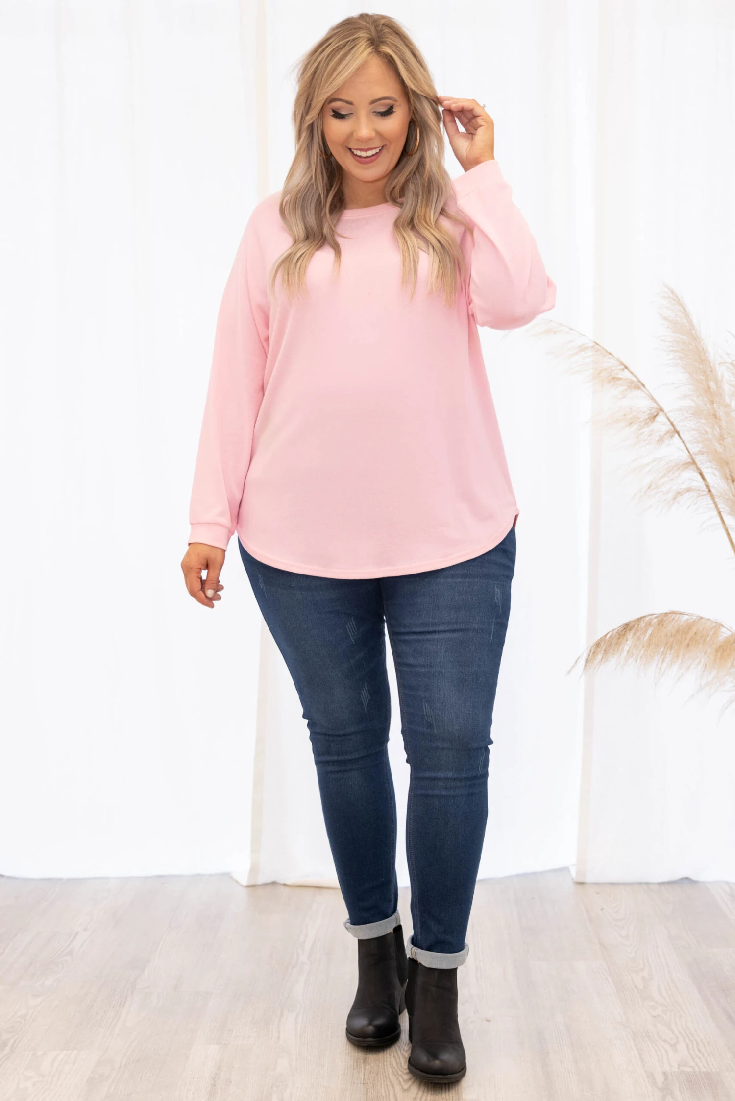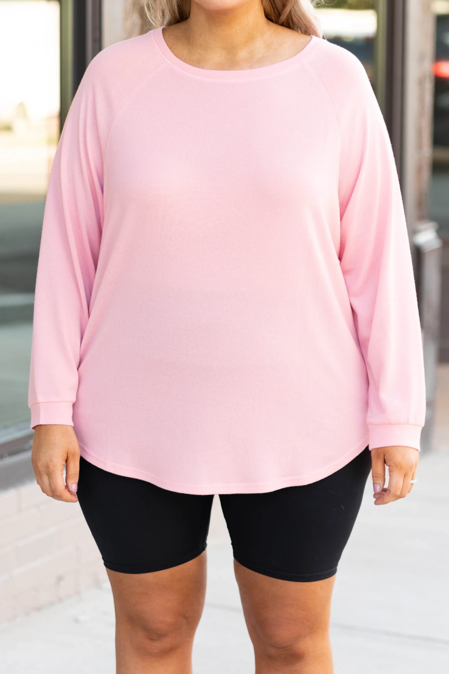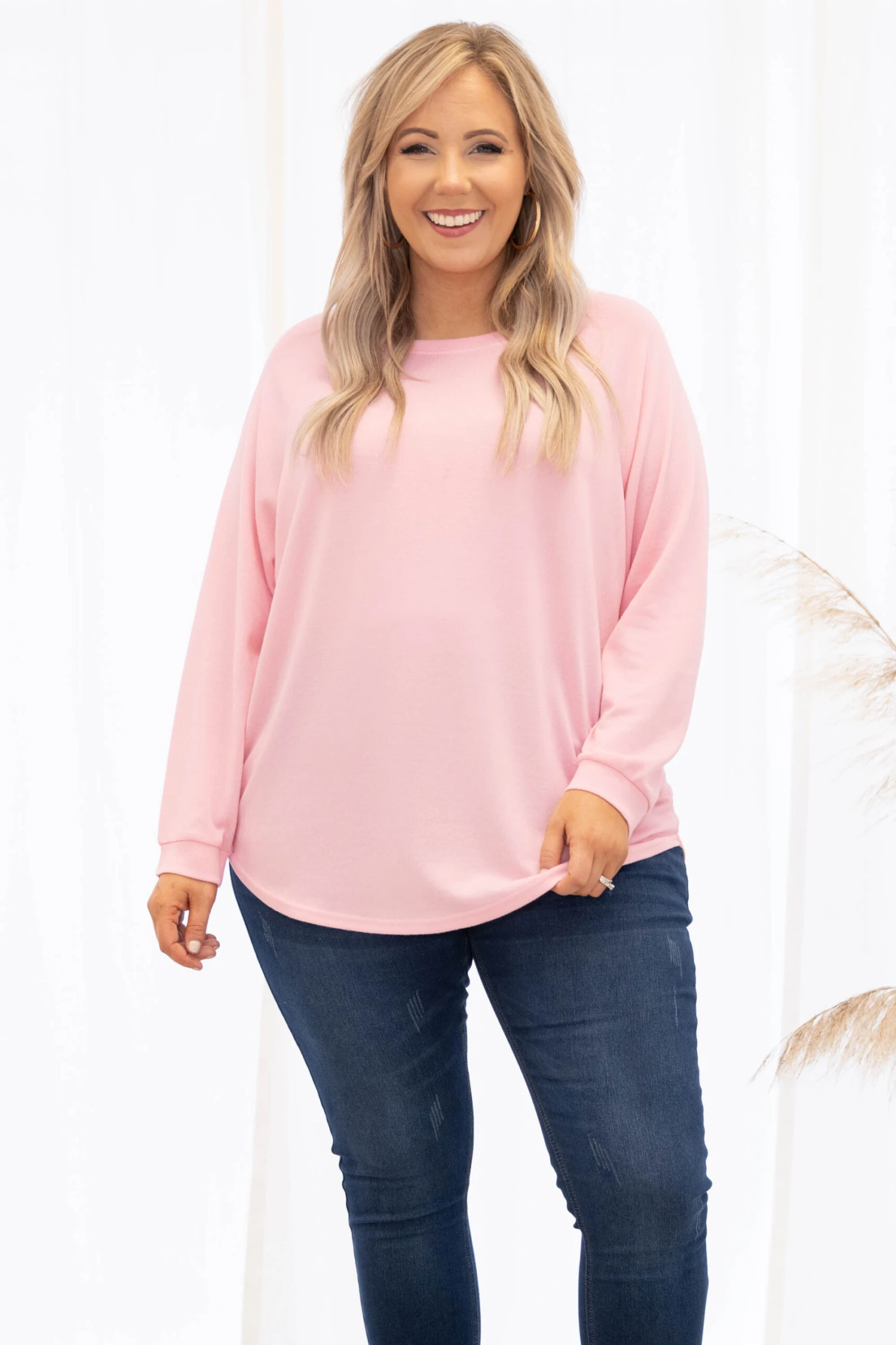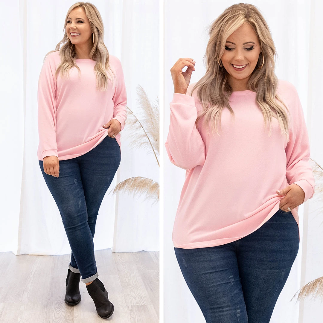 Curved Hem Slouchy Dolman Knitted Tunic, Pink