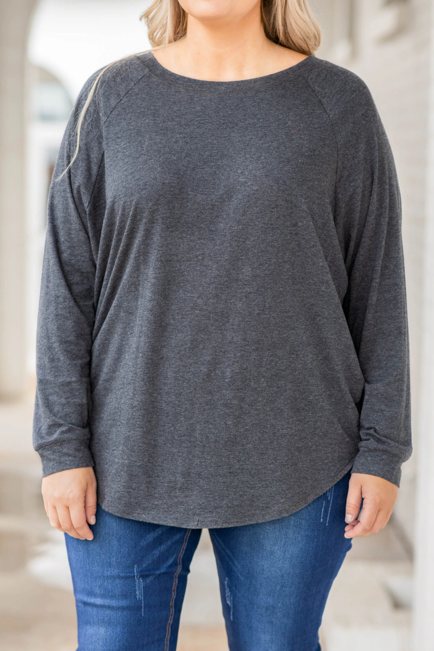 Curved Hem Slouchy Dolman Tunic, Charcoal
