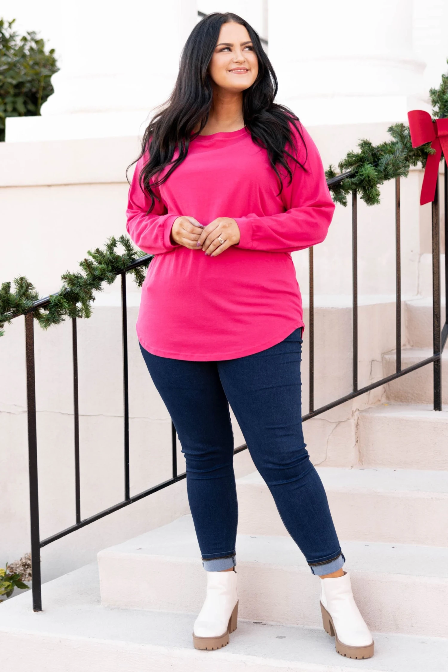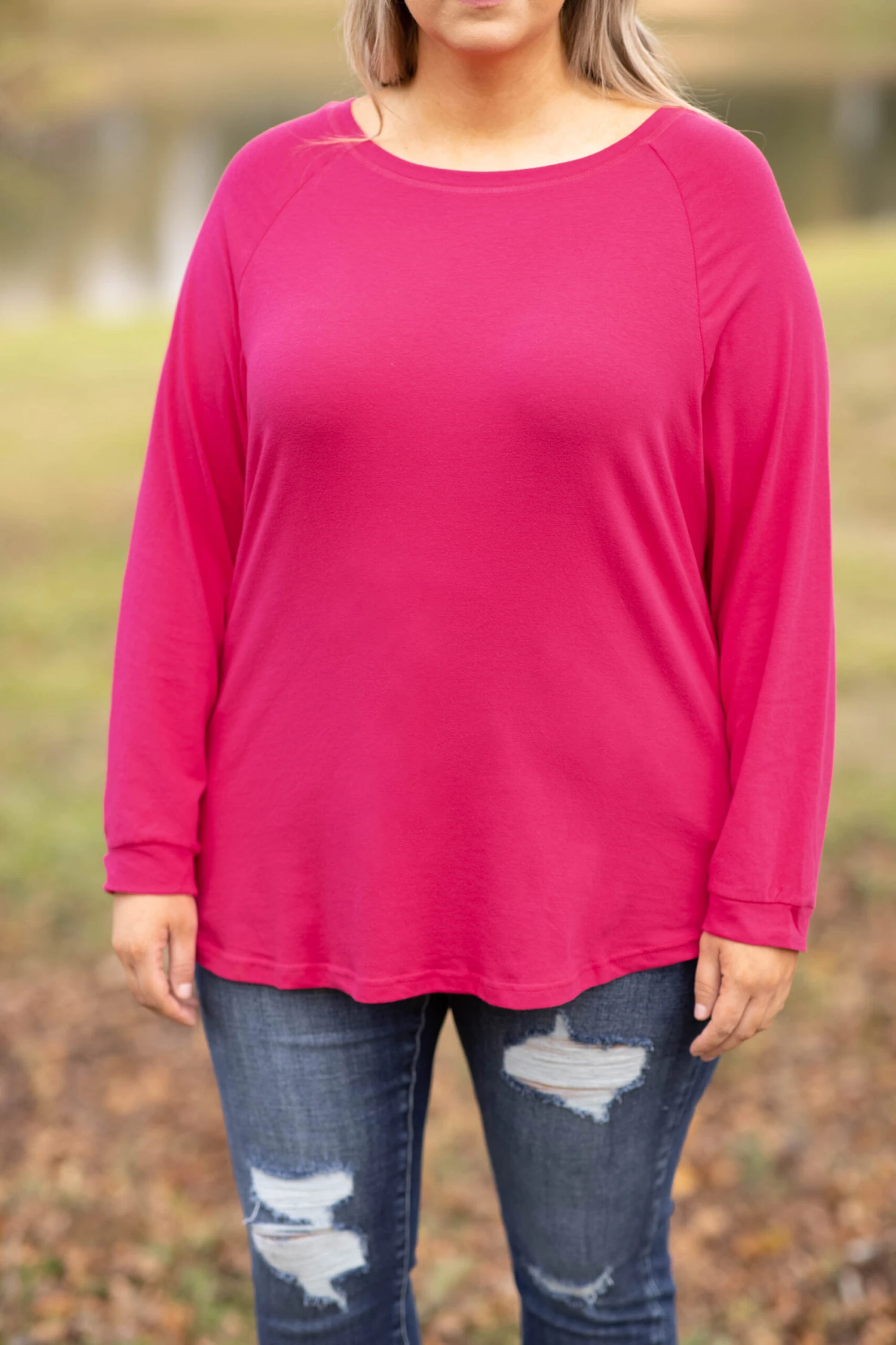Curved Hem Slouchy Dolman Tunic, Dark Fuchsia