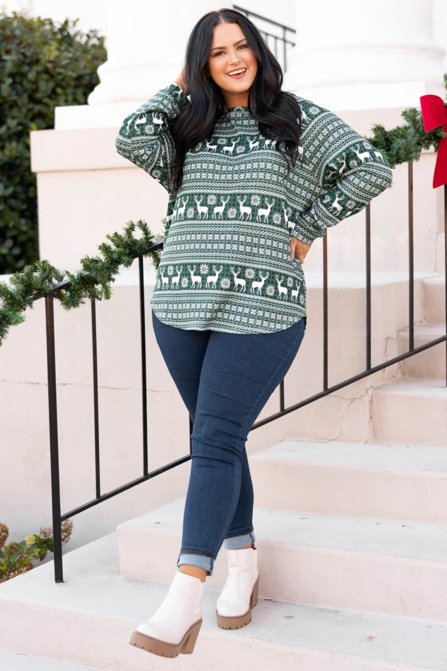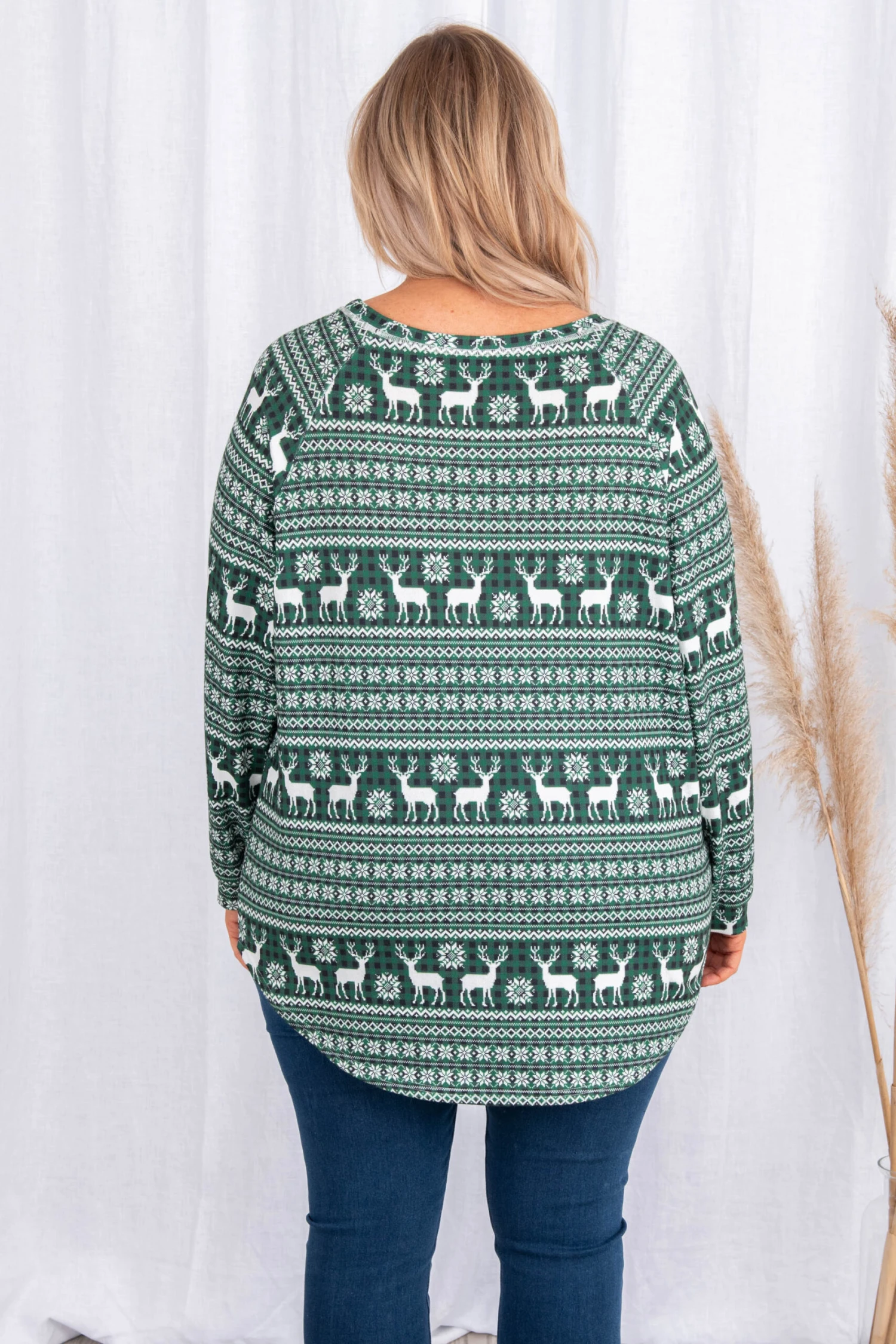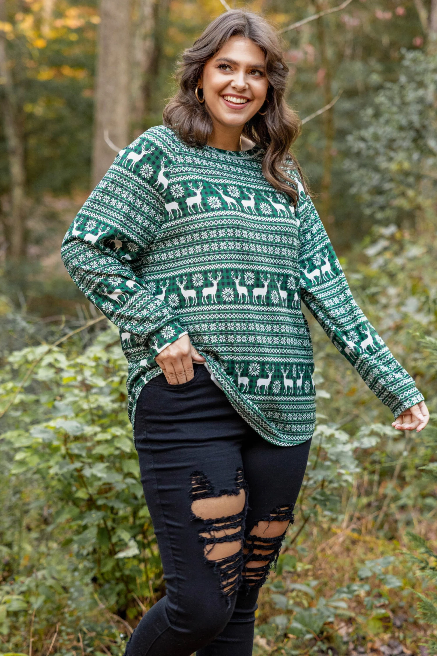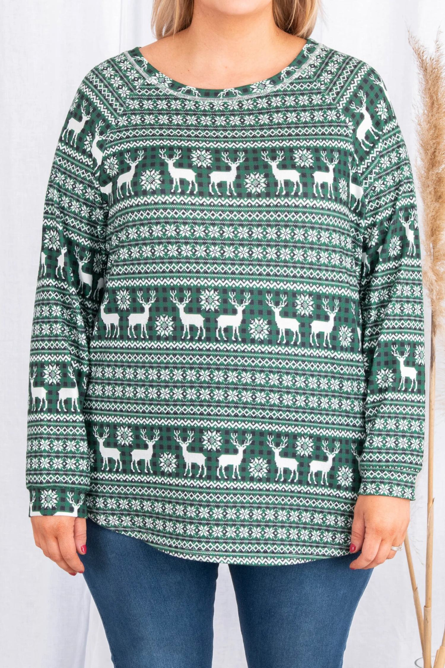 Curved Hem Slouchy Dolman Tunic, Festive Green