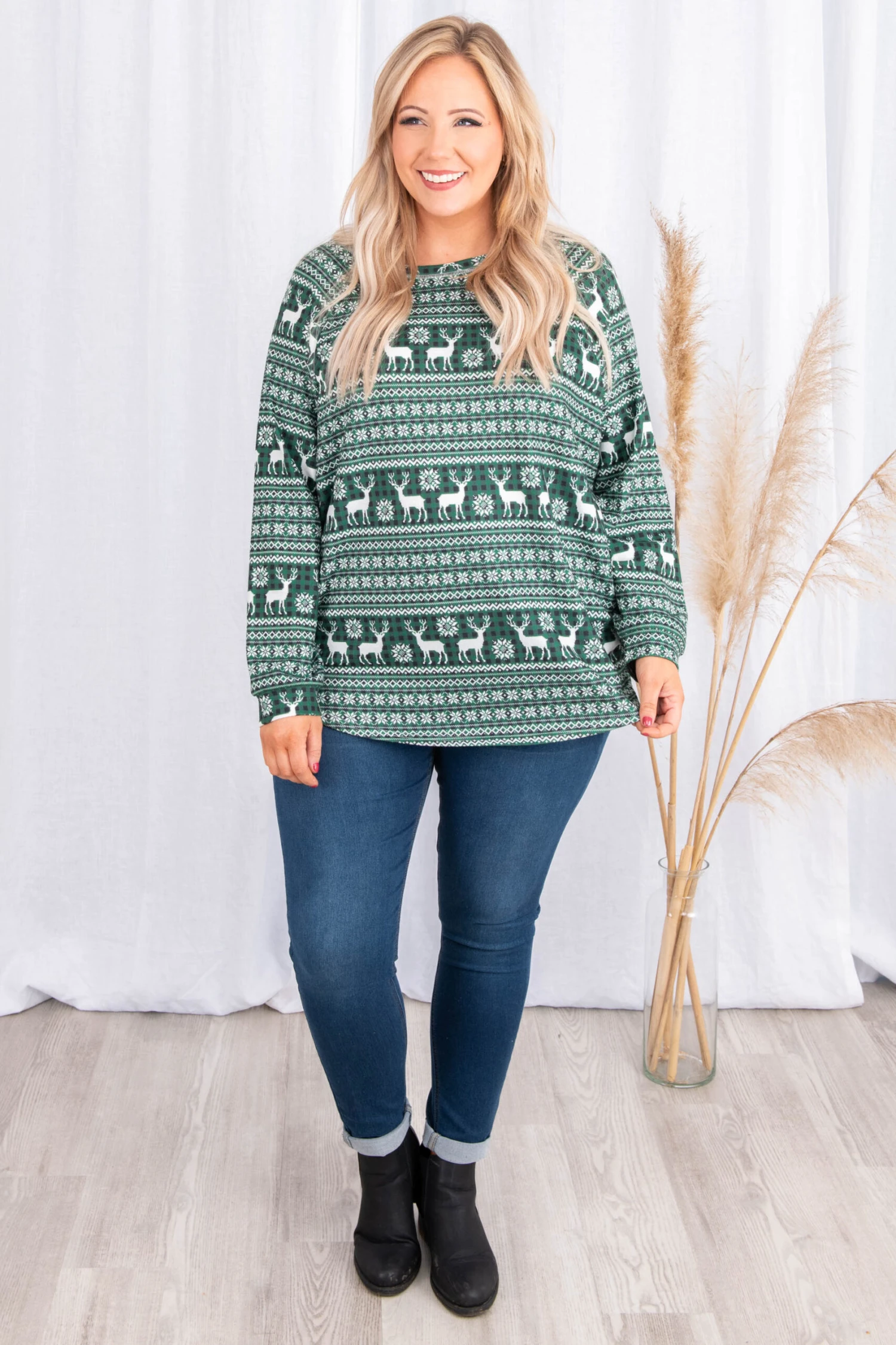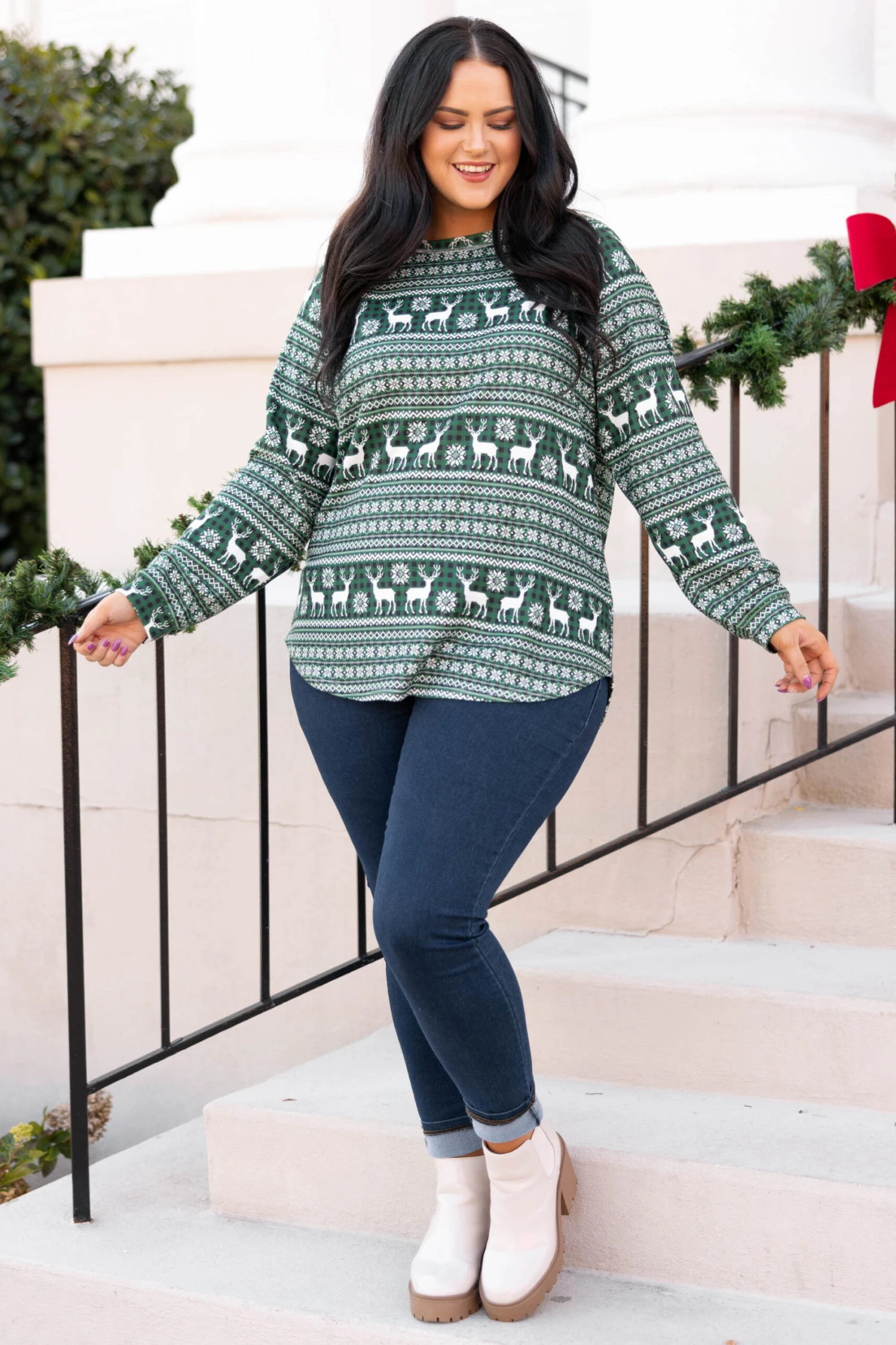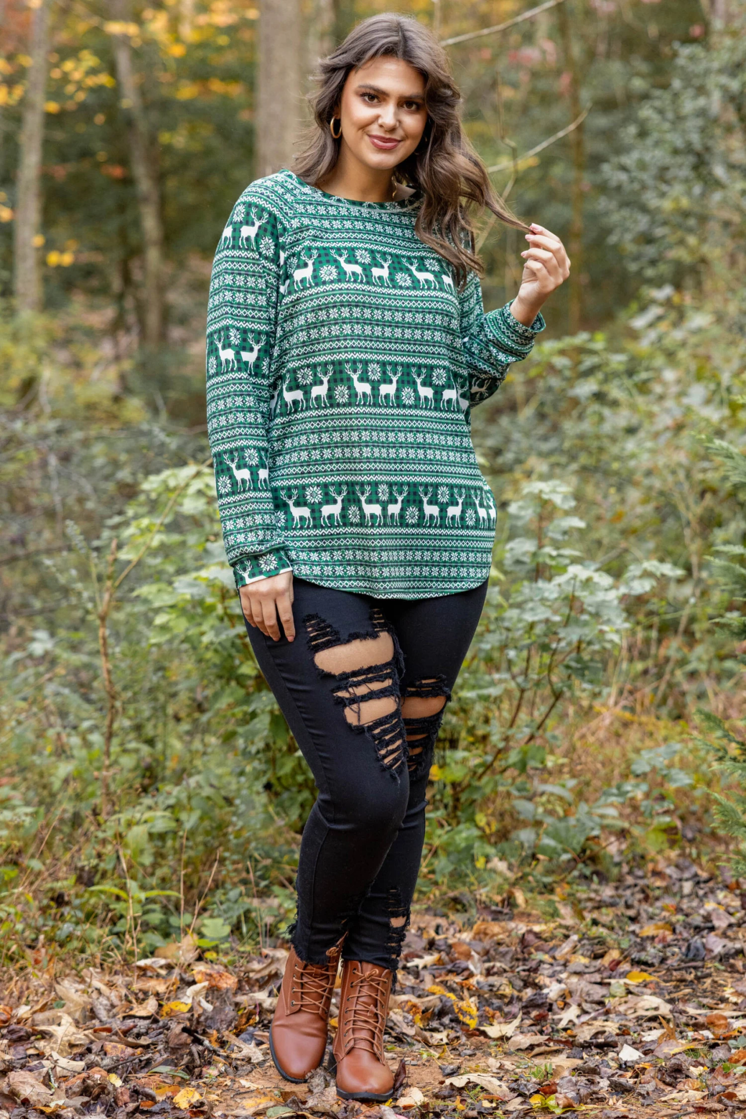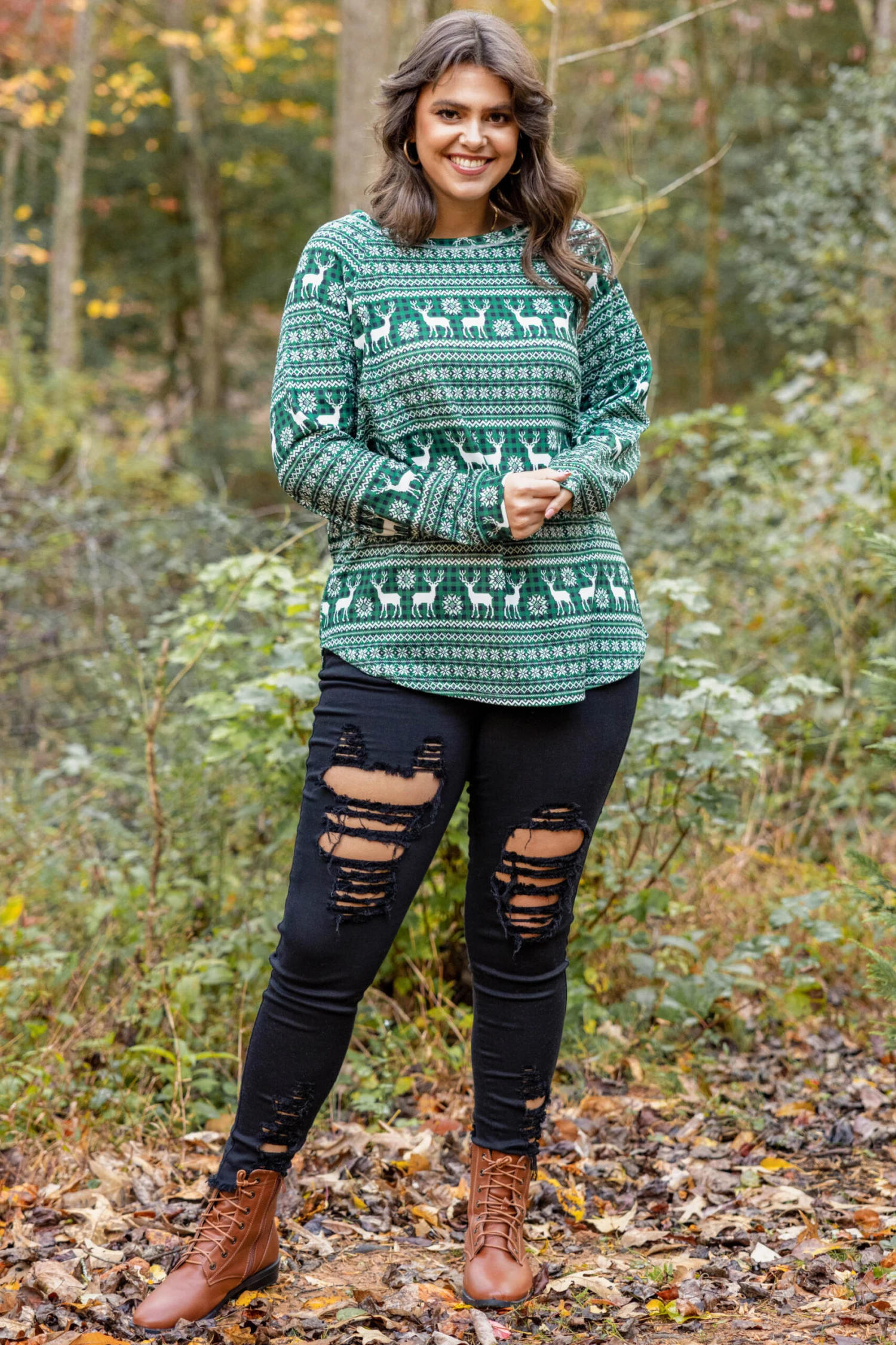 Curved Hem Slouchy Dolman Tunic, Festive Green