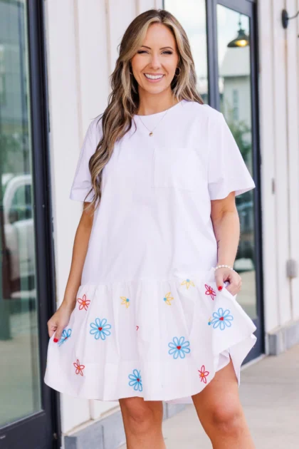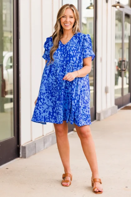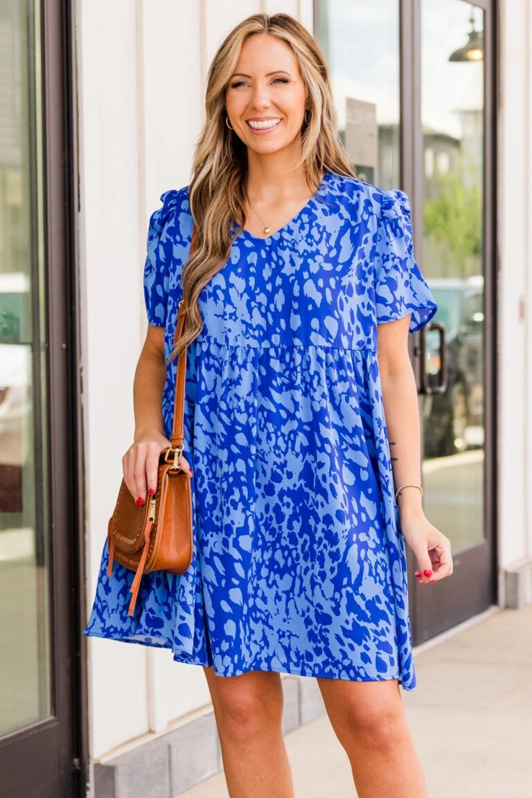 Next Big Move Dress, Royal-Off White