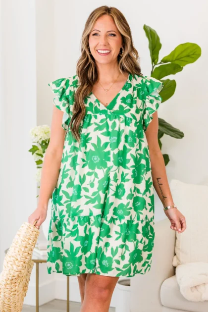Next Big Move Dress, Green Floral