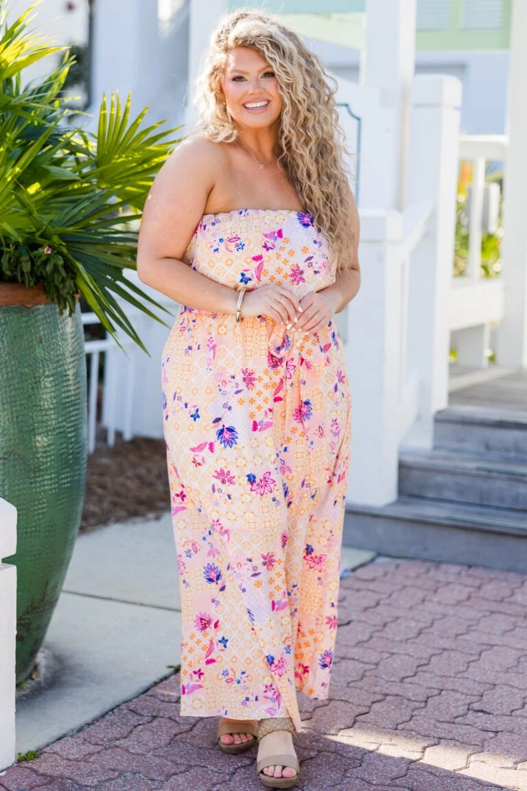 Bloom With Good Vibes Dress, Orange/Blue