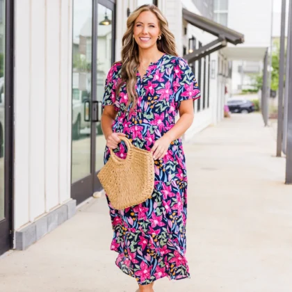 Blooming Vineyard Dress, Navy Multi