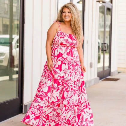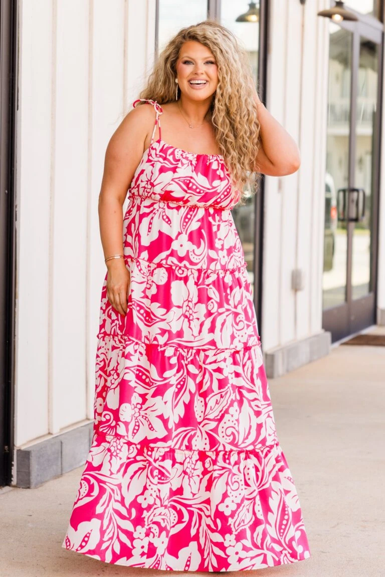 Blossom Elegance Maxi Dress, Hot Pink