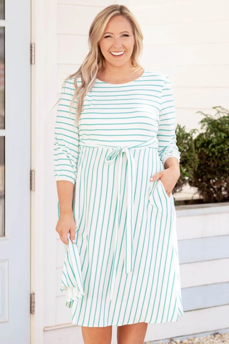 Holding Hands On The Boardwalk Dress, Ivory-Mint