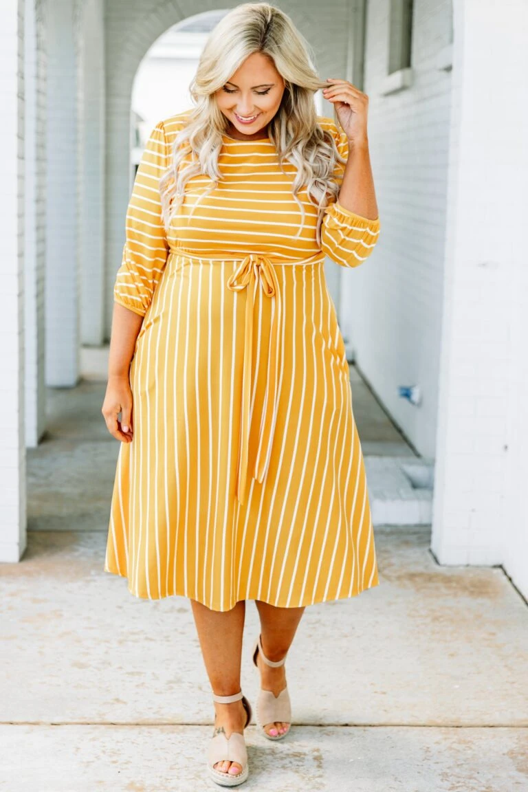 Holding Hands On The Boardwalk Dress, Mustard