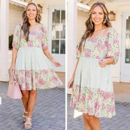 Be Gleeful Dress, Sage-Yellow