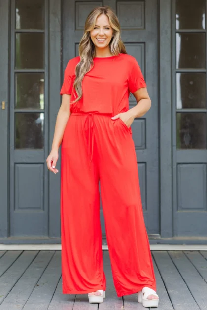 Louder Than Words Jumpsuit, Red