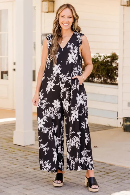 Lushly Blooming Jumpsuit, Black