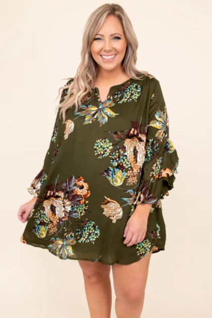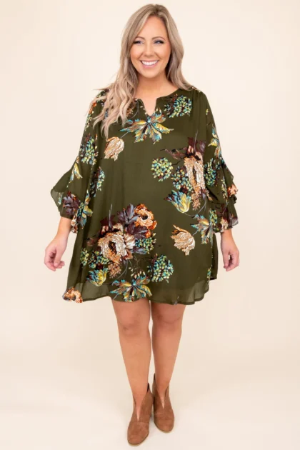 Autumn Blooms Dress, Olive