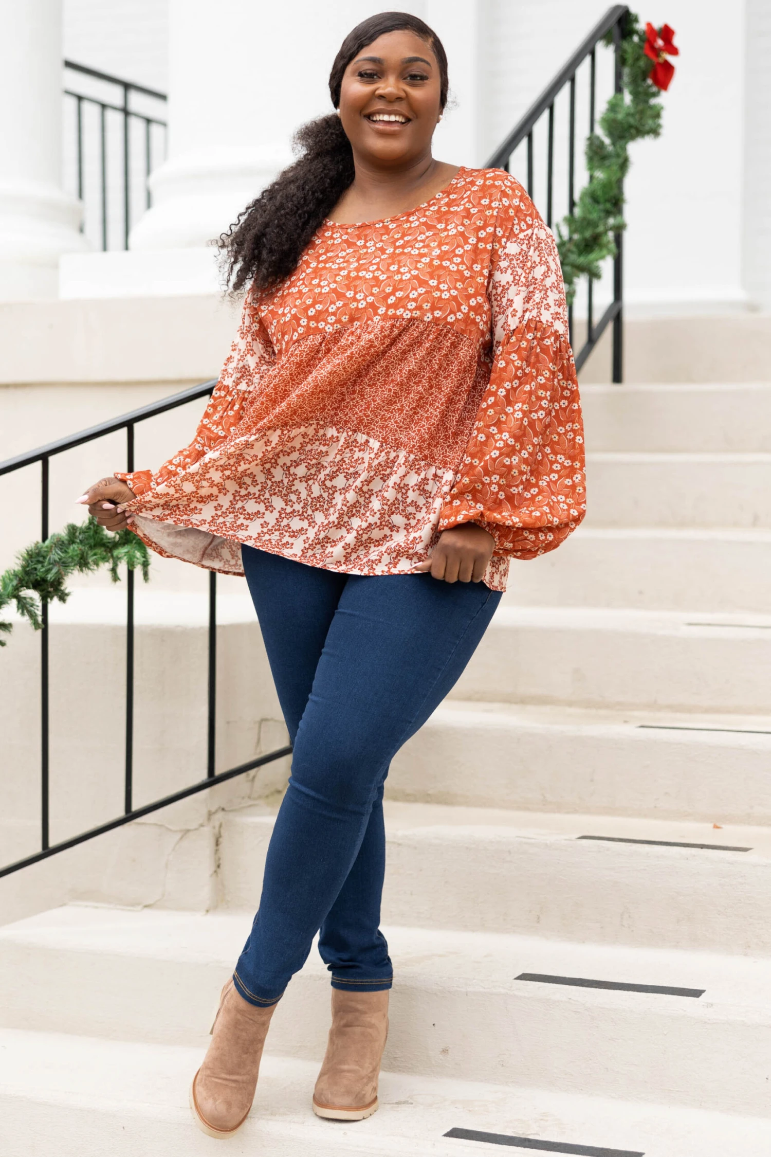The emotions we have for this top are endless! We LOVE the bold red color and the floral pattern that is so chic! The babydoll design and adorable sleeves are everything! Style this top with skinnies and booties for a casual chic look!