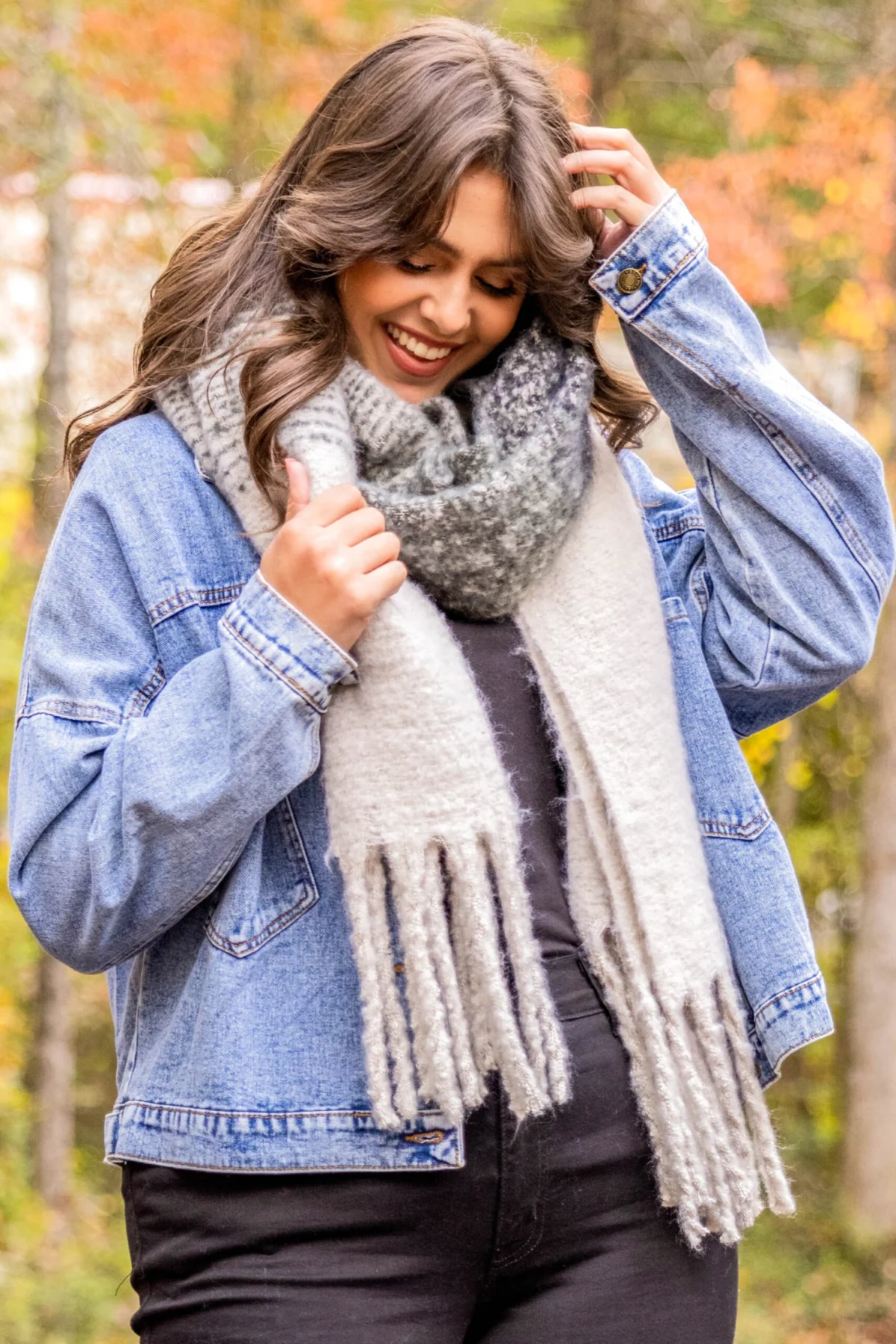Wrap up and stay warm in this scarf! This scarf has a cool blue color that is perfect for the season! It has a classic design with fuzzy fabric and tasseled ends for a look we adore! Pair this scarf with a basic top or dress for an effortlessly chic outfit!