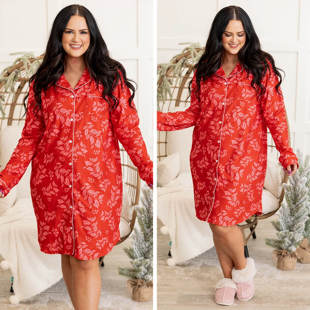 Holiday Happy Pajama Dress, Red