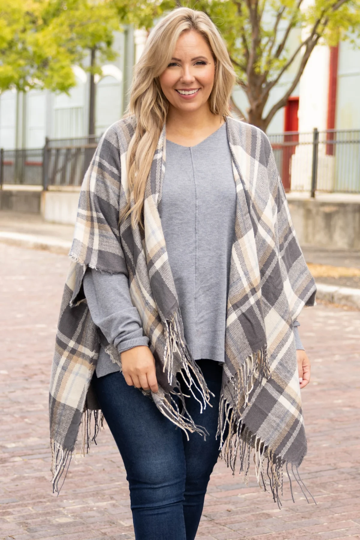 Irresistible Style Poncho, Grey