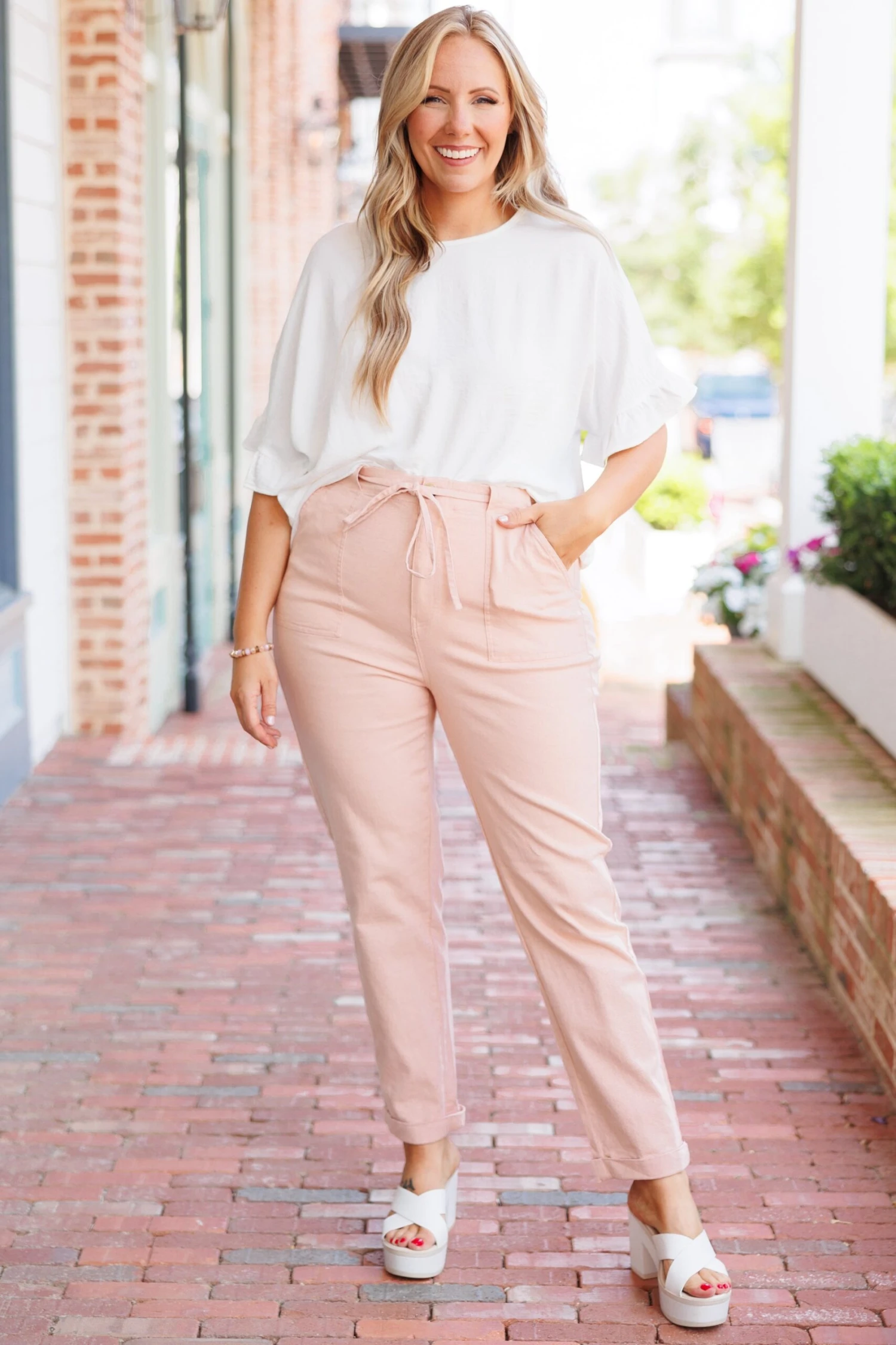 Keeping Busy Pants are the perfect combination of style and comfort! The pretty pink color and figure flattering fit make them ideal for a variety of occasions, from brunch dates to days at the office! With a classic, timeless design, these pants are the perfect wardrobe essential for the modern professional!