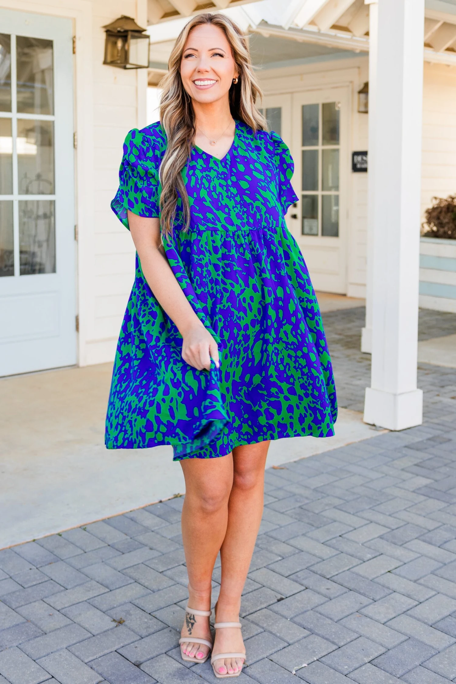 Discover the perfect dress for the season with our One By One Dress in a lovely green hue!  Featuring a babydoll design, bold colors, and a trendy leopard pattern, this dress is sure to become your new favorite! Stand out in style and make a statement with this must-have piece!