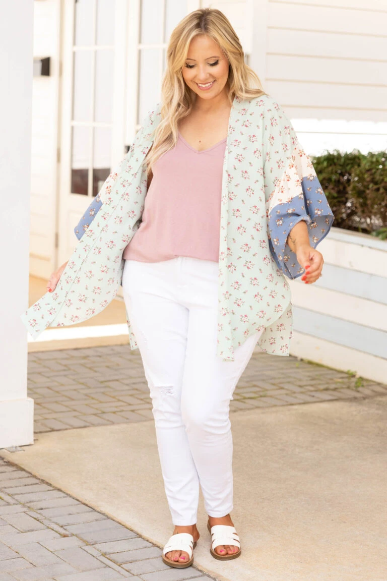 Escape With Me Kimono, Mint Multi
