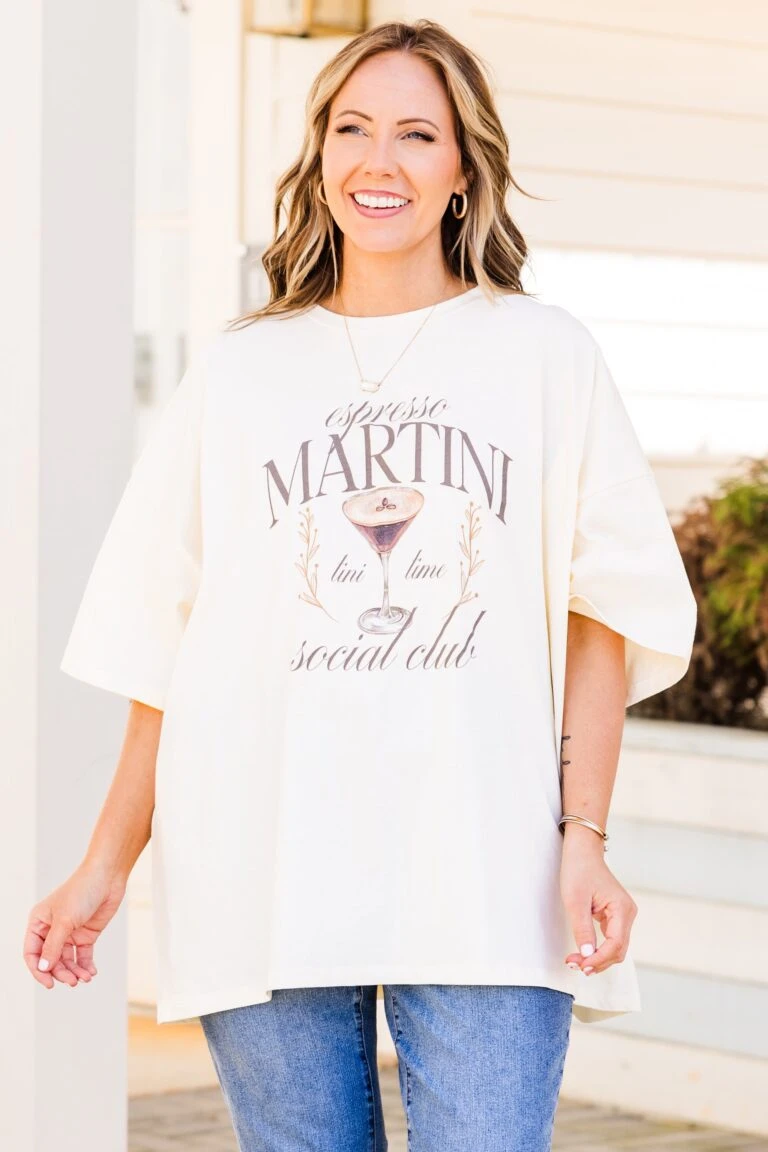 Espresso Martini Social Club Boyfriend Tee, Ivory