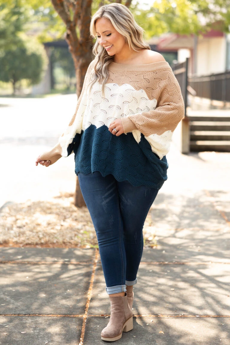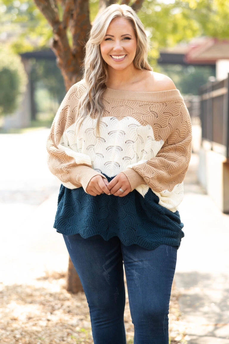 Angel In You Sweater, Mocha-Blue