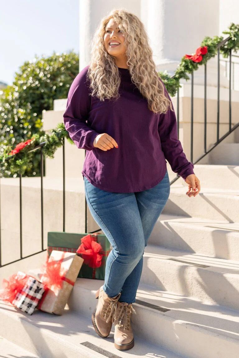 Curved Hem Slouchy Dolman Tunic, Plum Sequin