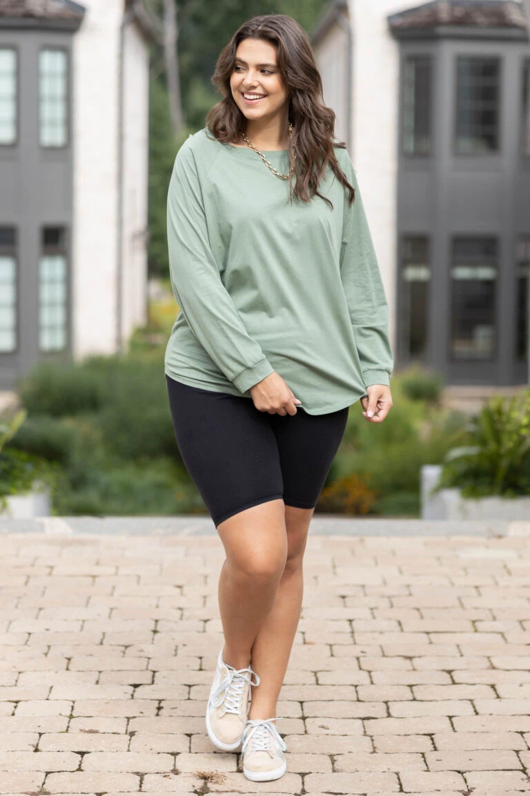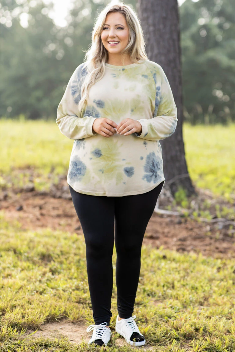 Curved Hem Slouchy Dolman Tunic, Tie Dye Olive