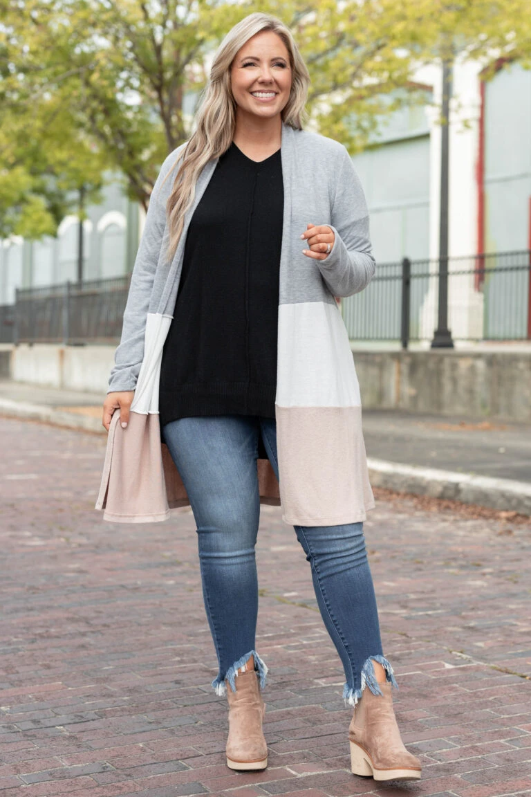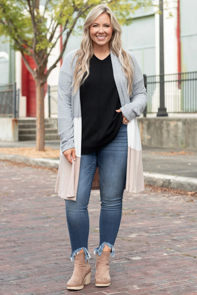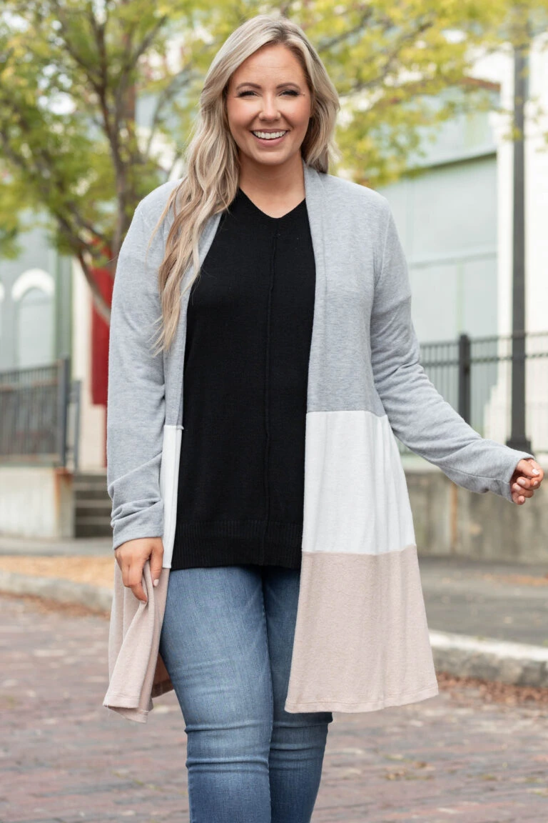 All Business No Play Cardigan, Dark Gray-Ivory-Taupe