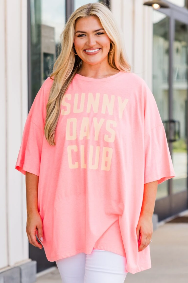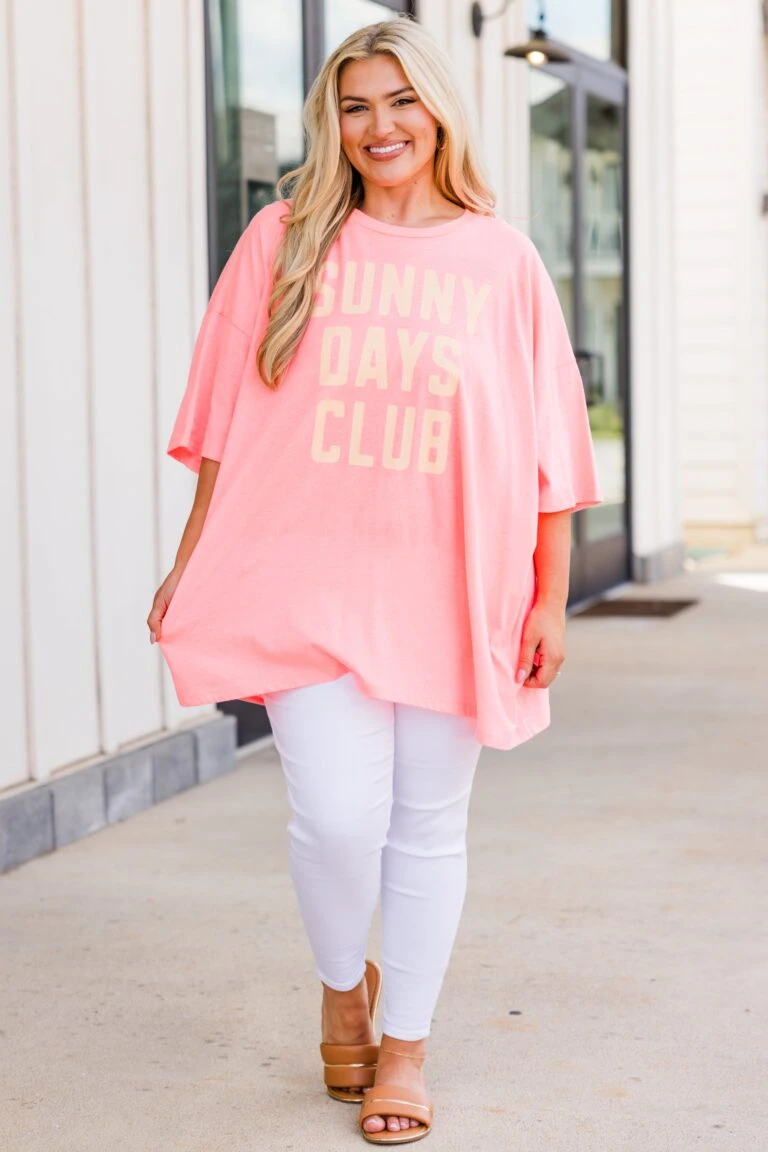 Always Blooming Boyfriend Tee, Neon Coral Pink